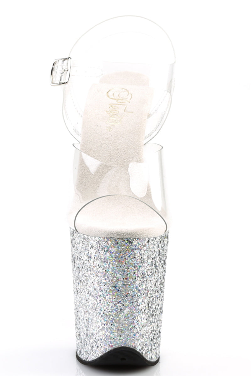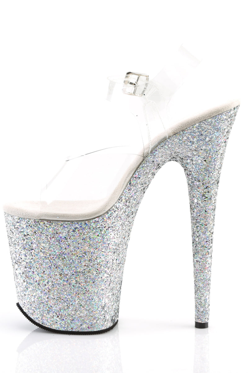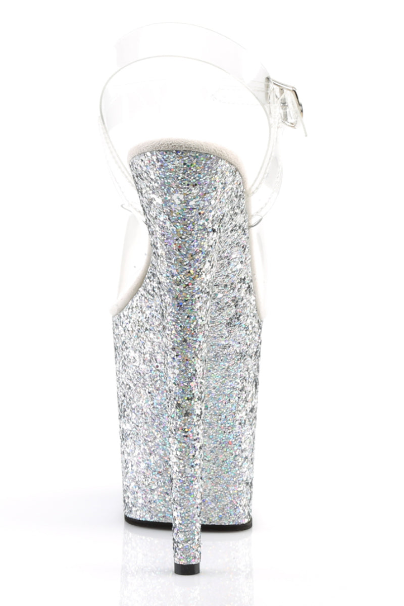 Pleaser USA Flamingo-808LG Holographic Glitter 8inch Stilettos - Silver
