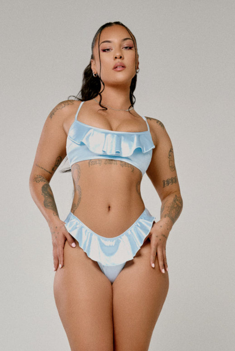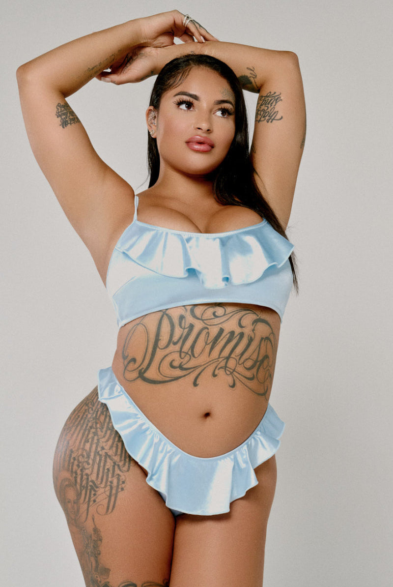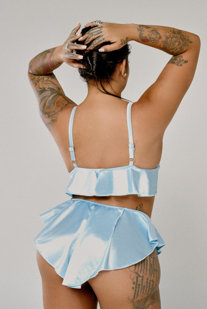 CXIX X HOAH Pillowtalk Ruffle Top - Blue Satin