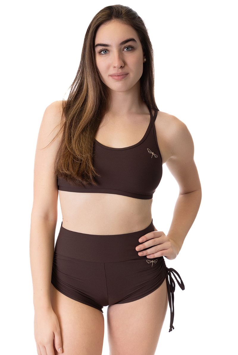 Dragonfly Emma High-Waisted Drawstring Shorts - Espresso