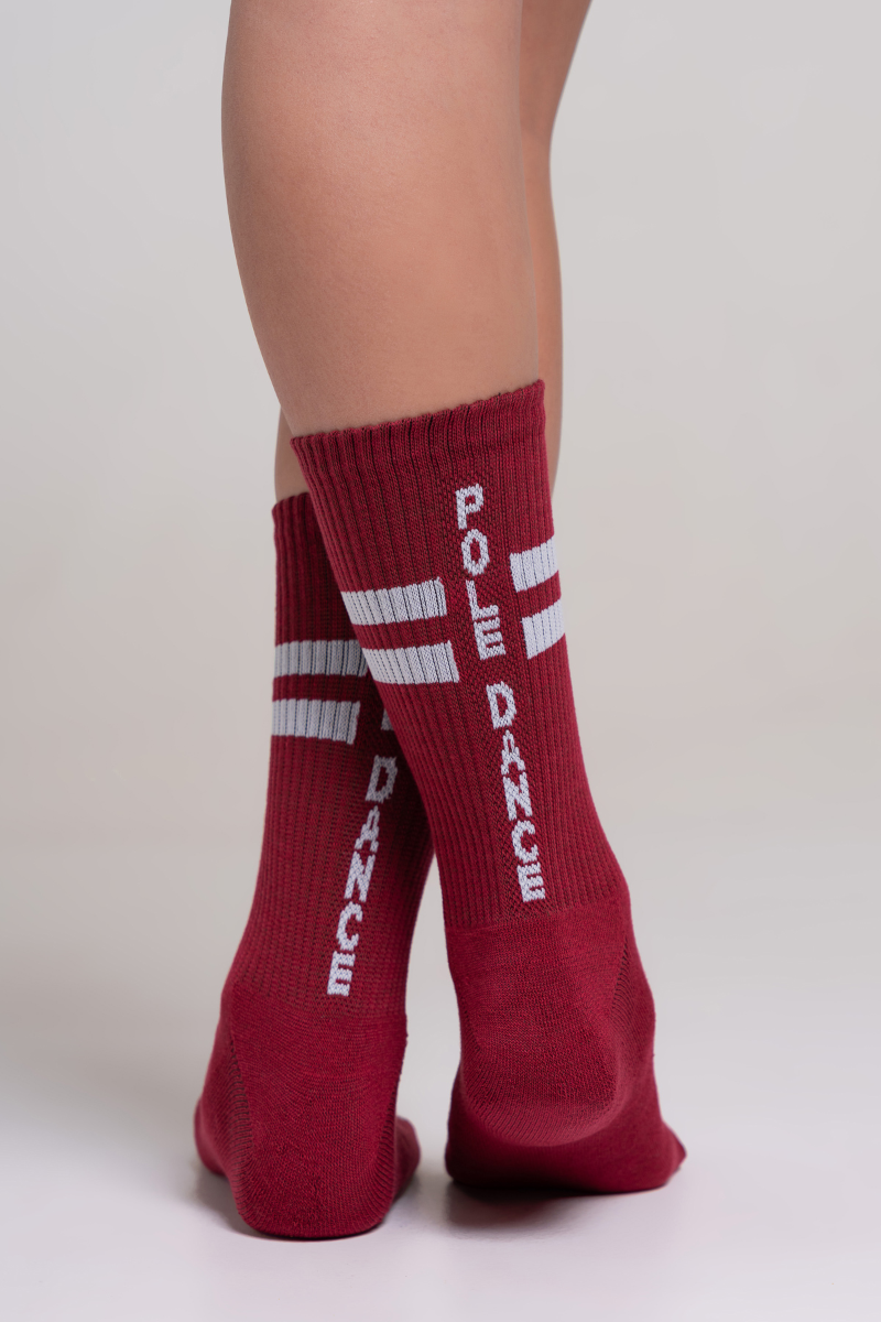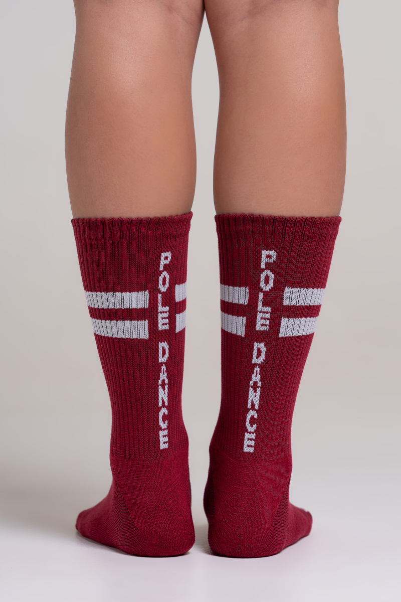 Serve up some serious attitude in these burgundy crew socks 🍷 Flashing a crisp white double stripe and "Paradise Chick" toes, they're the perfect partner for your floorwork flow. With bold "Pole Dance" lettering down the back, there's no mistaking your mission.