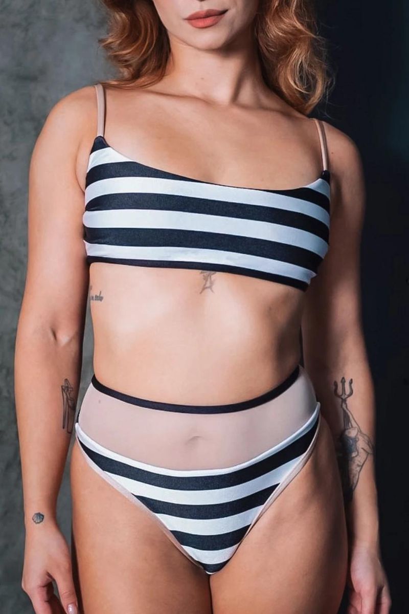 CXIX Silhouette One-Piece Bodysuit - Black with Black Mesh
