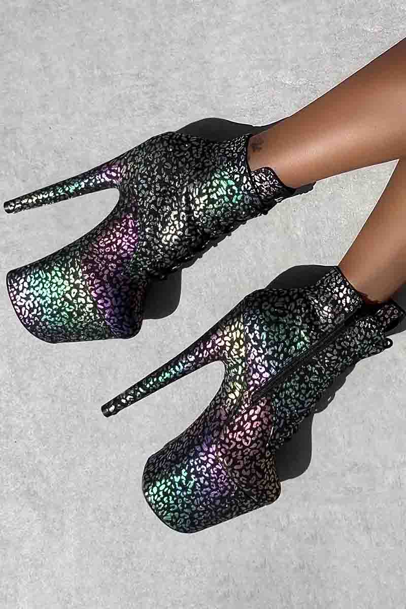 Hella Heels Moonlight Leopard 8inch Low Ankle Boots - Iridescent
