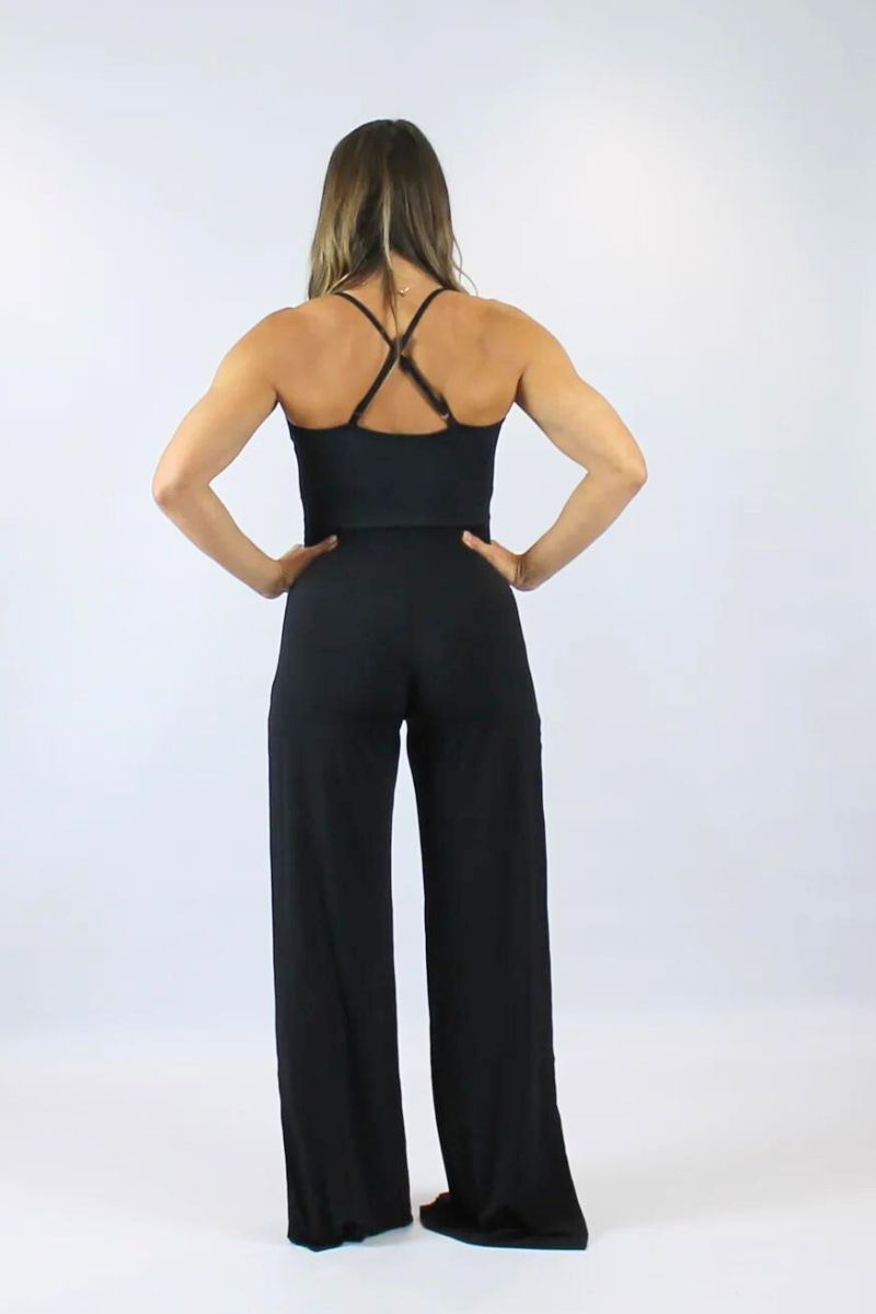 Olra Activewear Statement Open Leg Lace Jumpsuit - Black