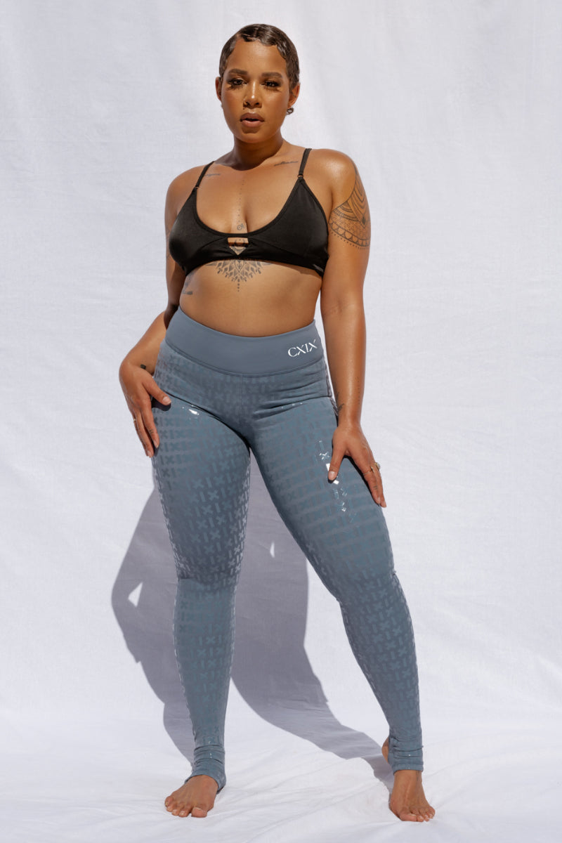 Paradise Chick Superhero Sticky High Waist Leggings - Dusty Blue Leopard