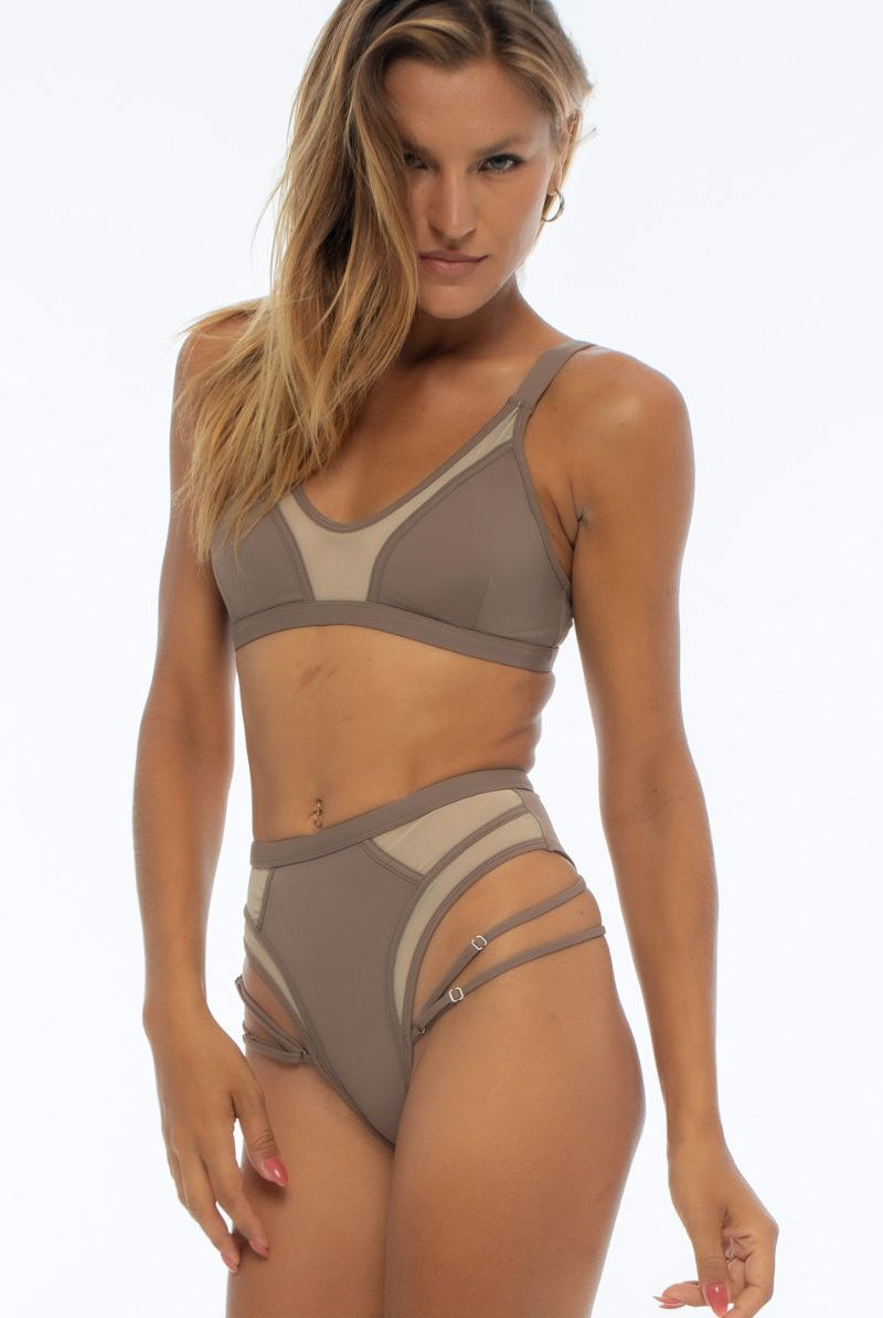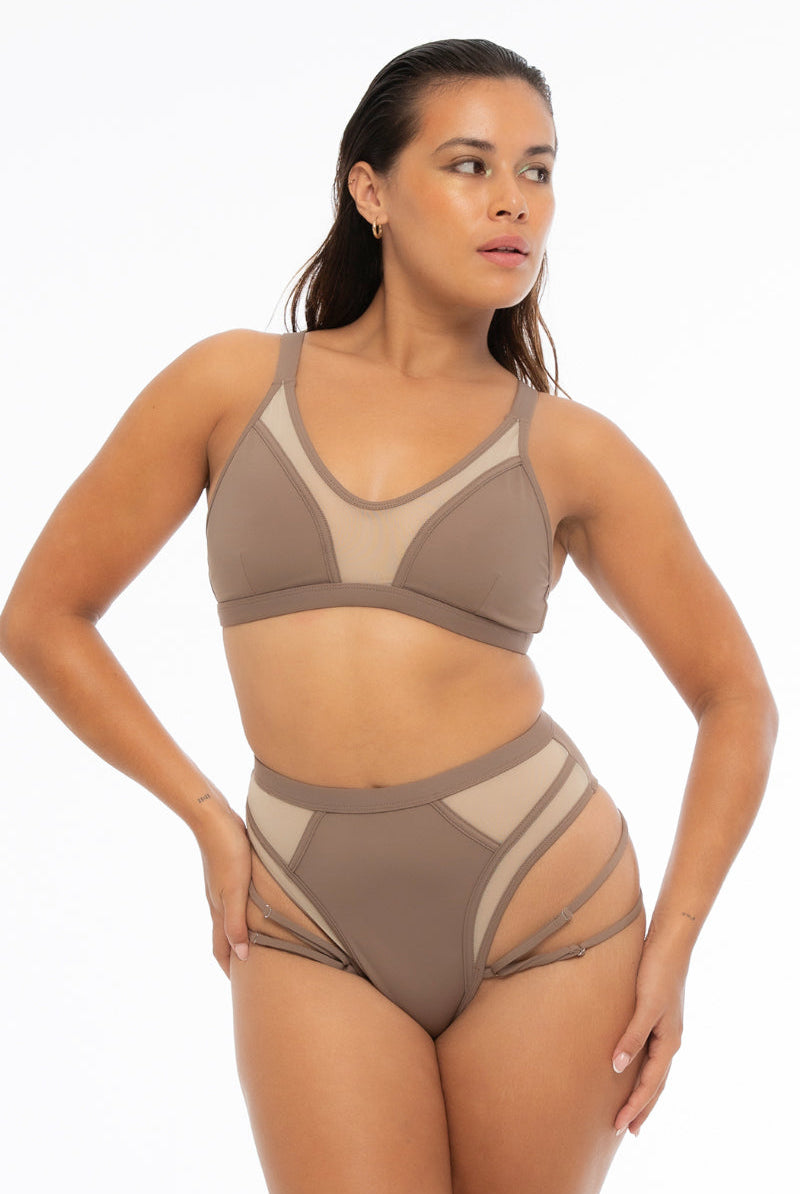 Lunalae Lure You High Waisted Garter Shorts - Taupe