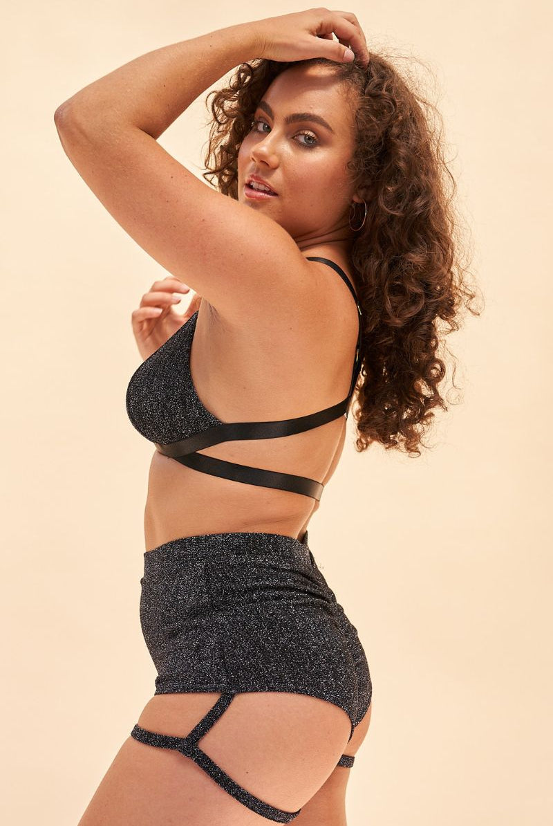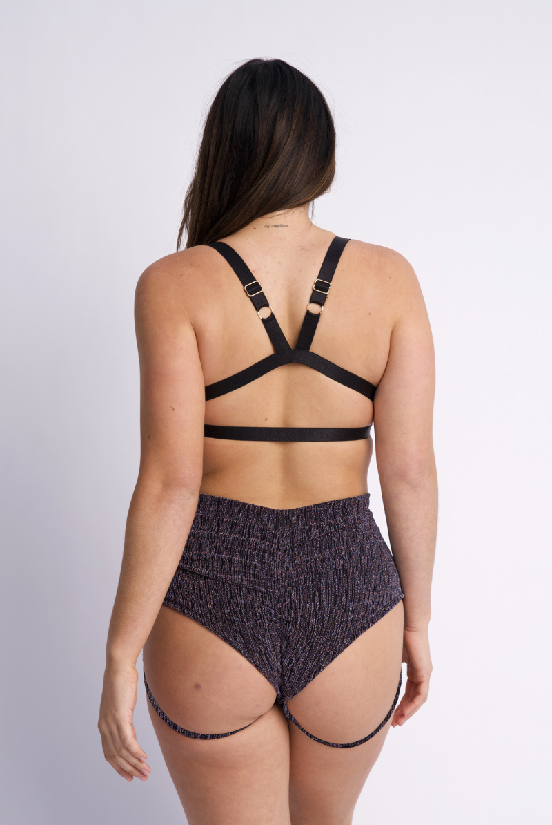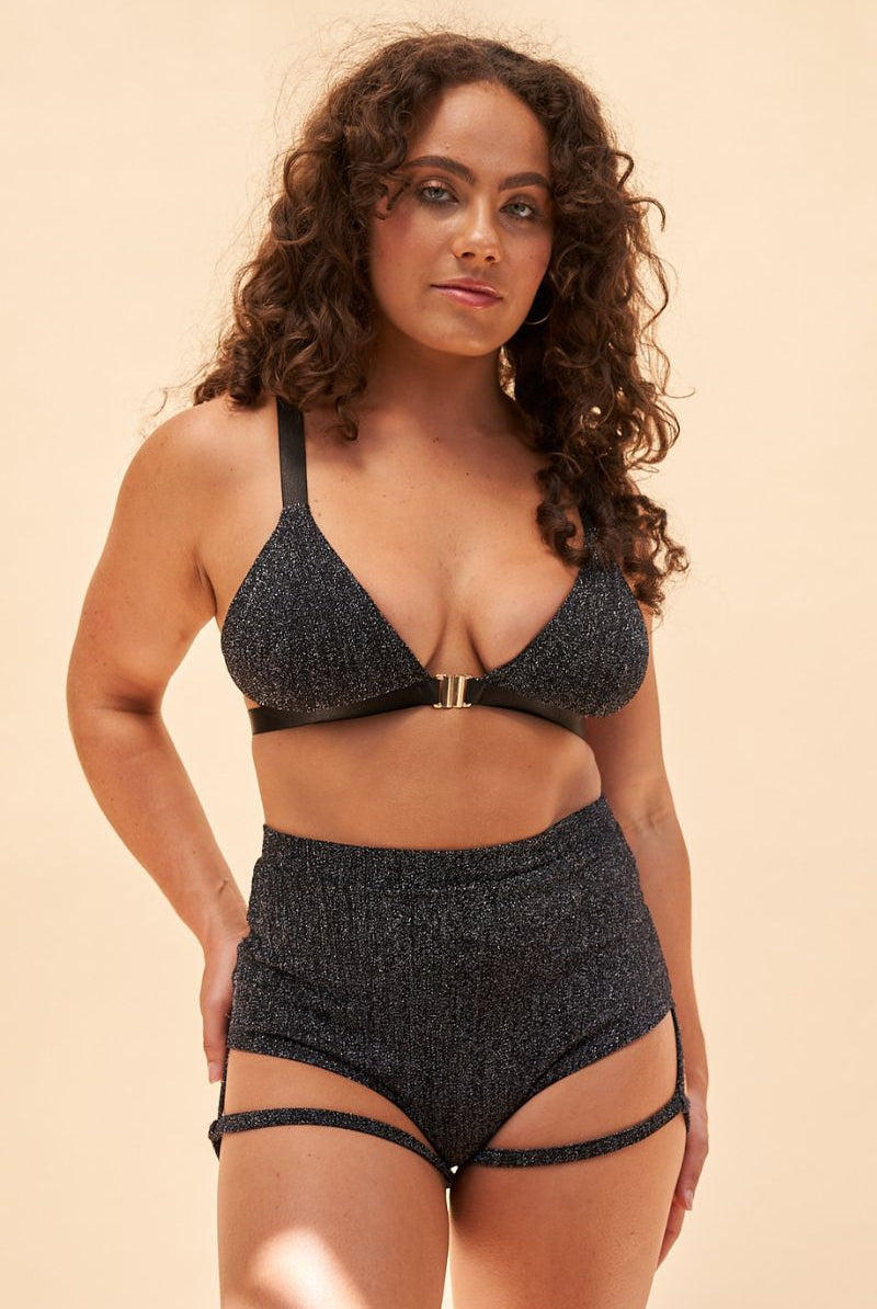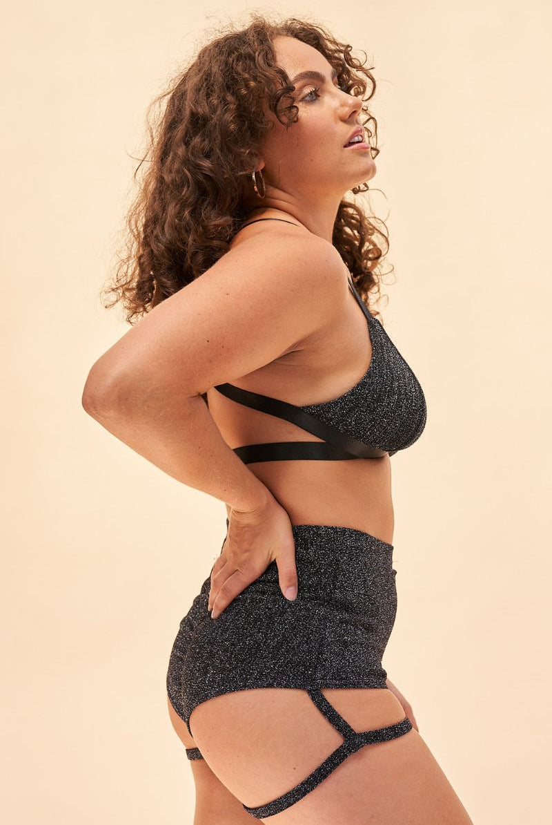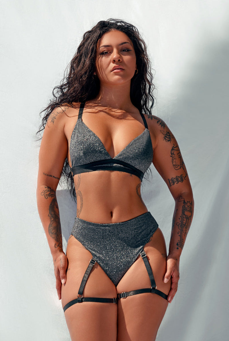 CXIX Cora High Waisted Garter Bottoms - Black with Silver