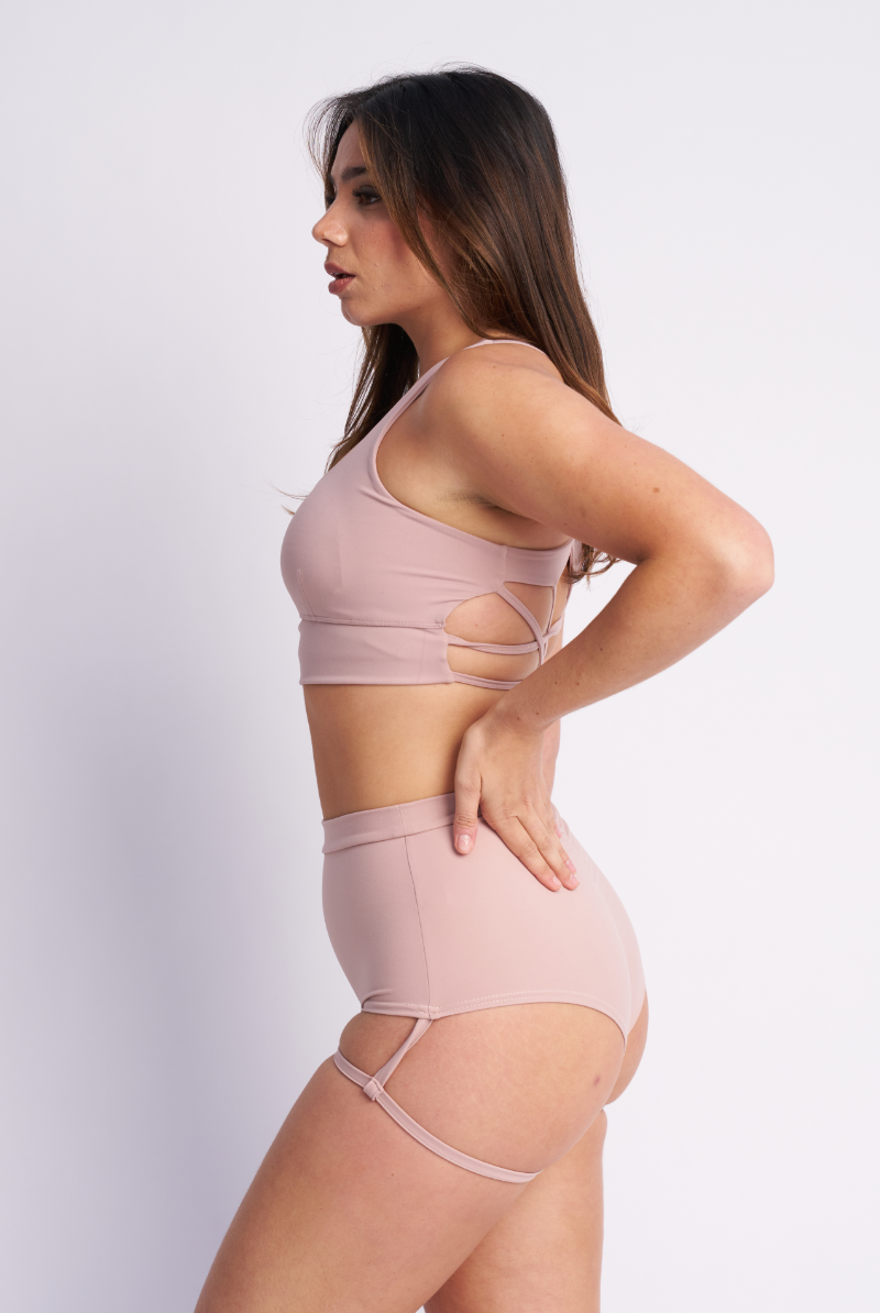 CXIX Cora High Waisted Bottoms with Garter - Aurora Pink