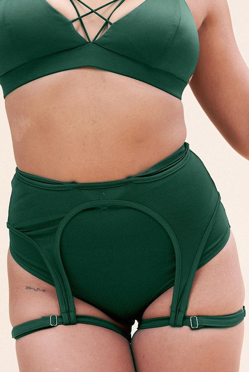 Lunalae Lure You High Waisted Garter Shorts - Green