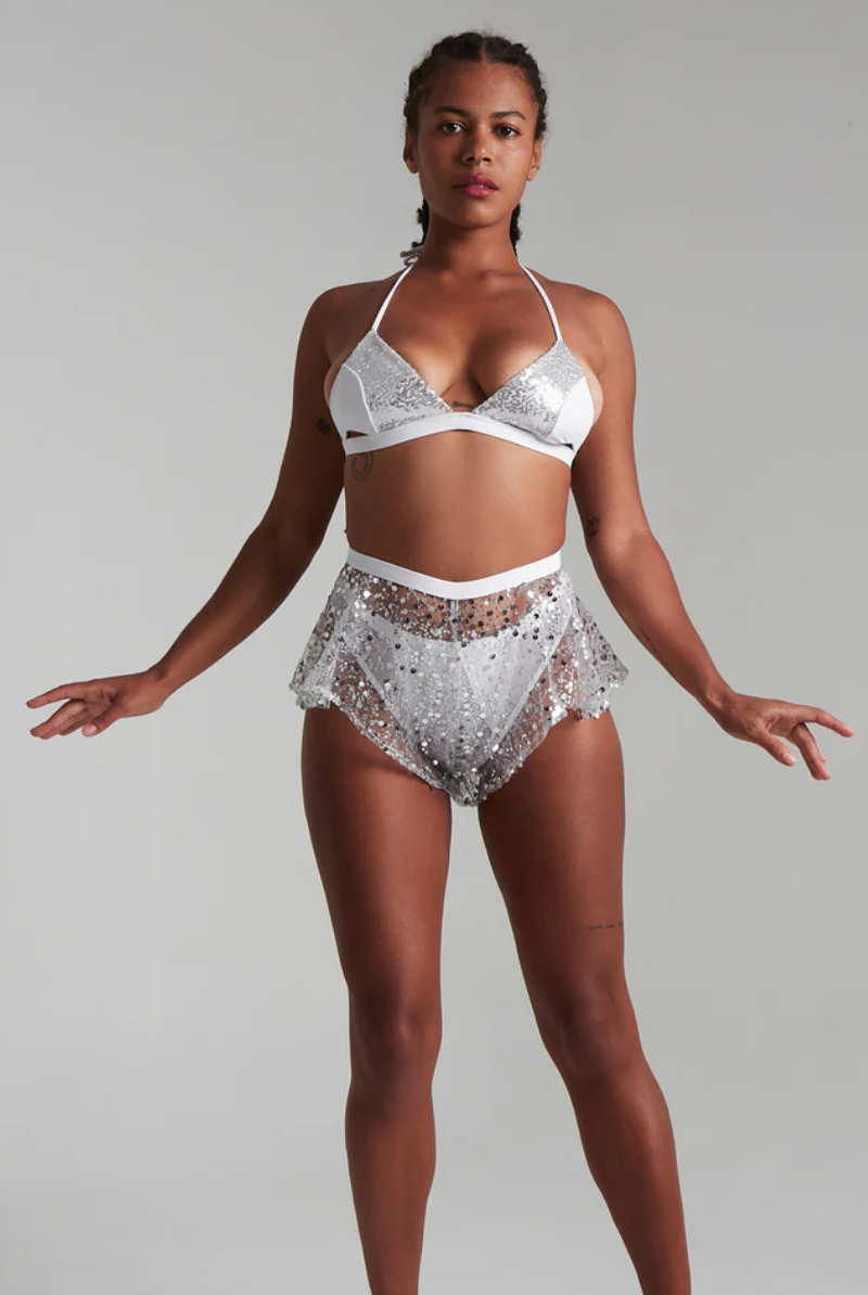 Lunalae High Cut Shorts - Green Silver Sparkle