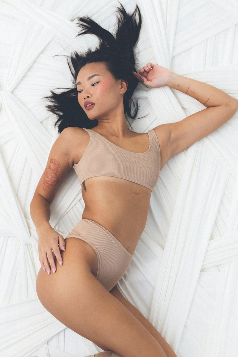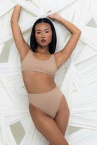 Your new daily grind. Part of HotCakes Essentials collection, this Toffee Latte top is a back-to-basics hero. The ribbed, fully-lined fabric offers fuller coverage and medium support. With a classic scoop neck and a daring low back, it’s a reliable staple for those who work hard.