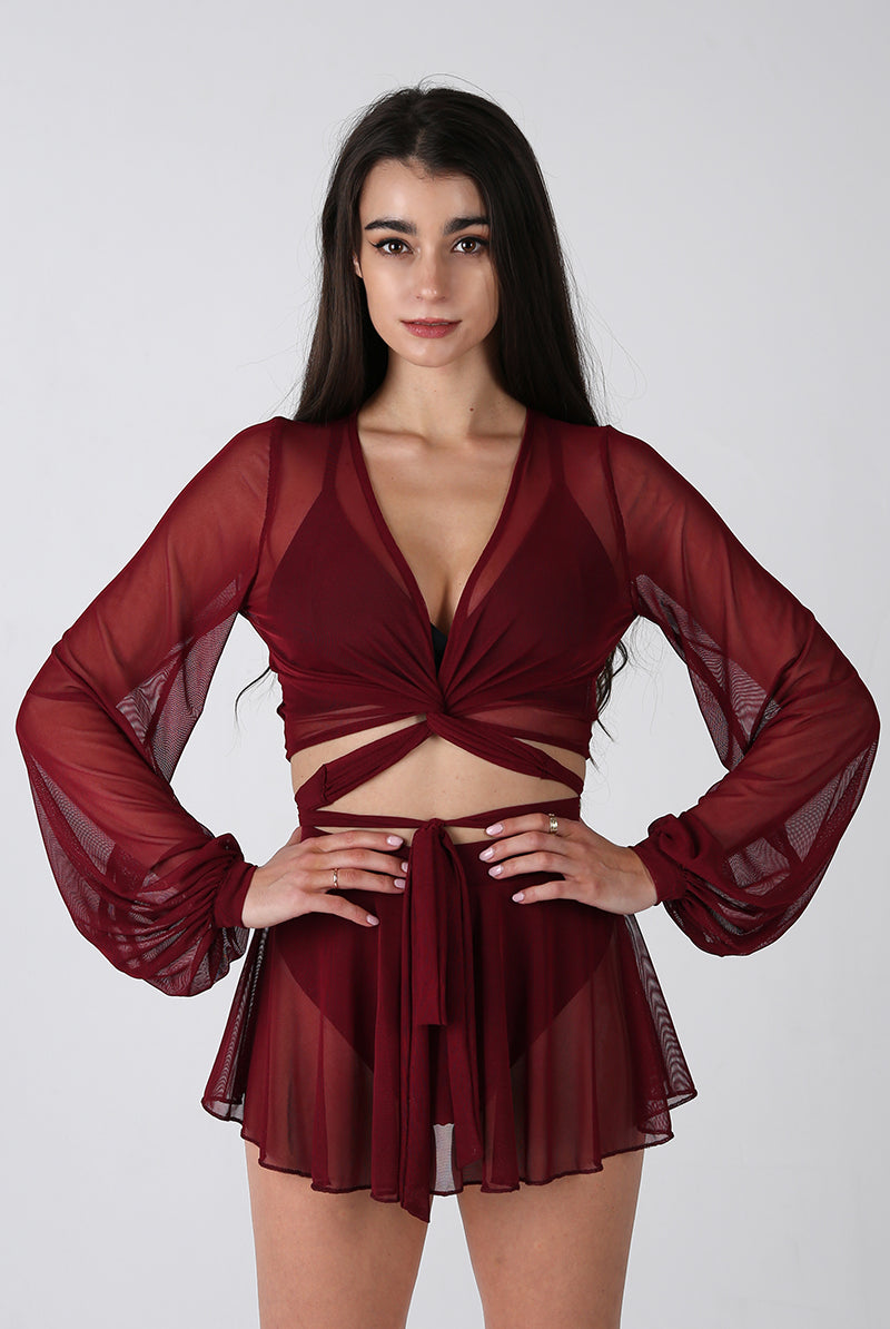 REV ACTIV Mesh Wrap Blouse - Wine