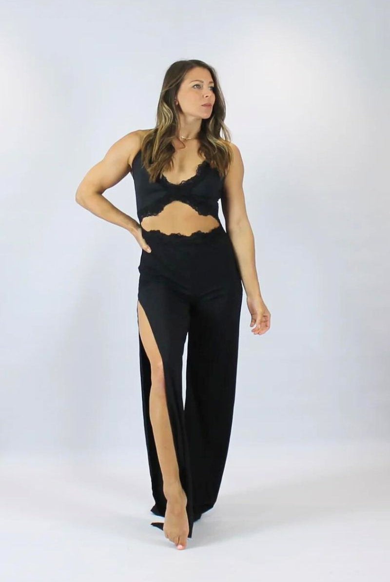 Olra Activewear Statement Open Leg Lace Jumpsuit - Black