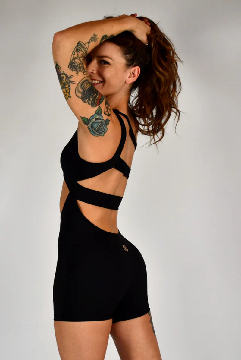 Olra Activewear Aurora One Shoulder Unitard Playsuit - Black
