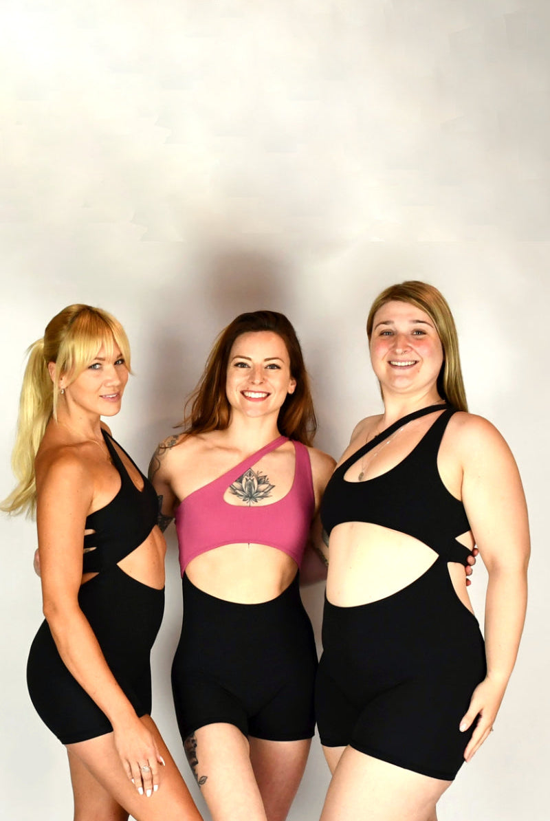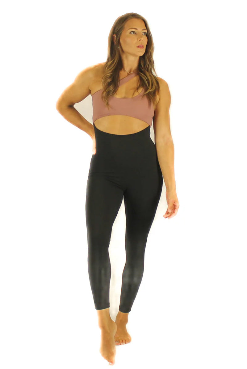 Olra Activewear Aurora One Shoulder Jumpsuit - Rose/Black
