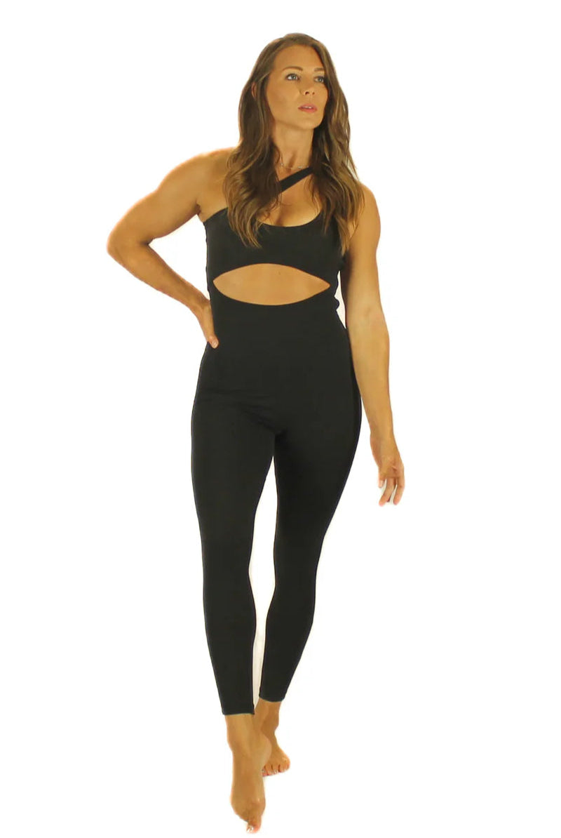 Olra Activewear Aurora One Shoulder Jumpsuit - Black