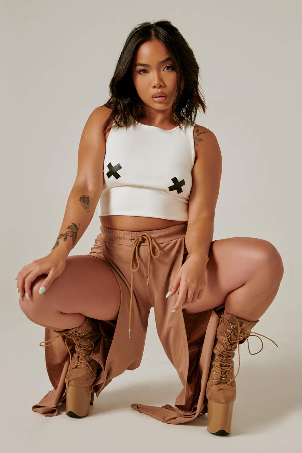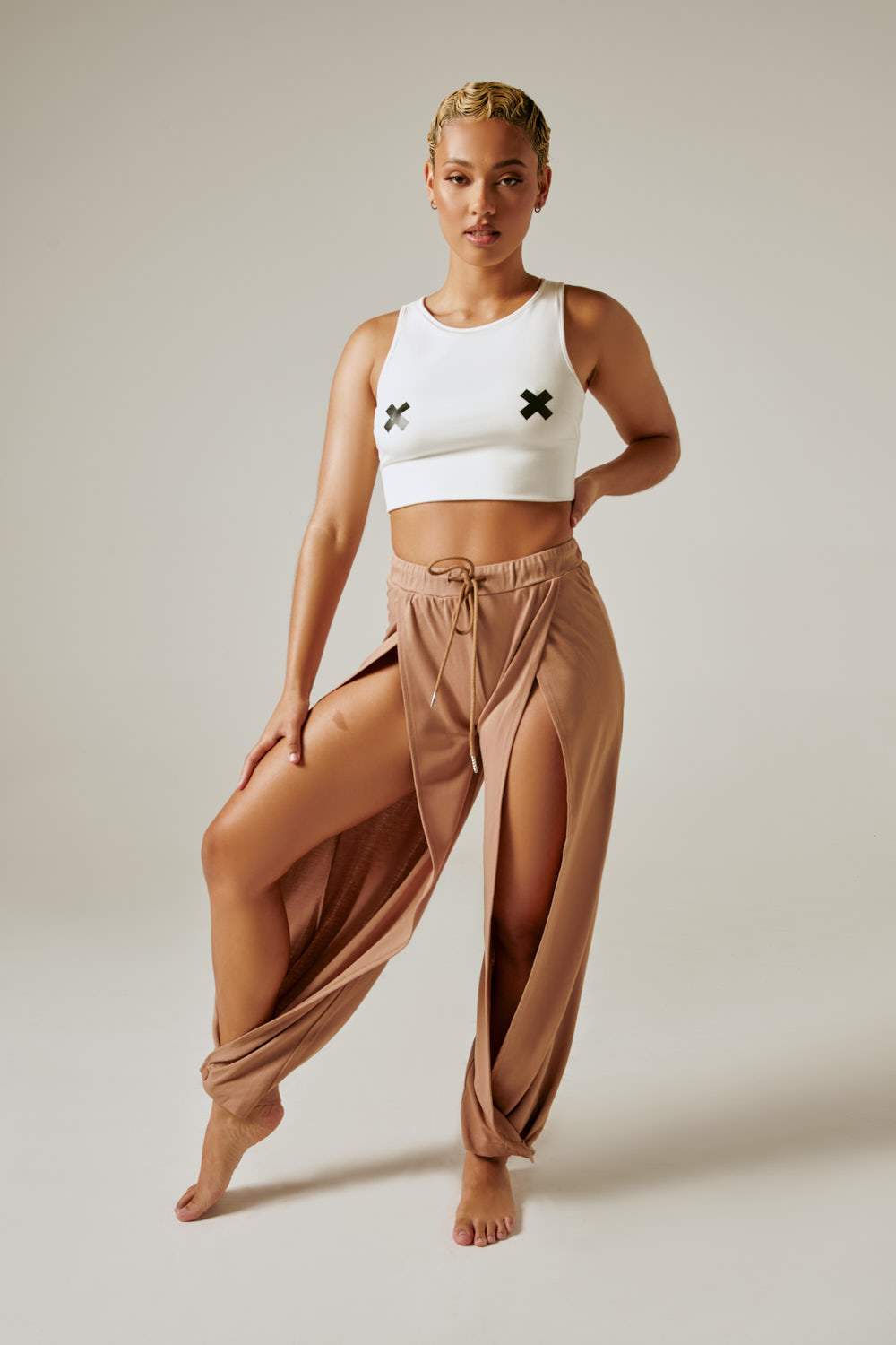 • Wide Leg | High Slit | Drawstring Waist | Draped fabric with cuff poppers