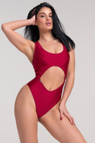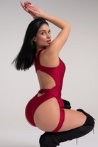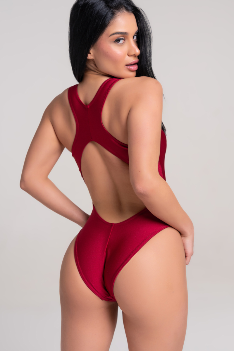 Turn up the heat in passion red. This bodysuit is pure fire, balancing a secure racerback and fuller coverage with a strategic stomach cut-out and open back. It's the perfect combination of support and seduction, giving you skin for grip while keeping everything in place.
