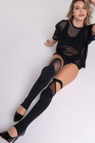 Styled here with Paradise Chicks Florida Bodysuit, Medusa Mesh Oversized T-Shirt, Polecious Garter Top and Polecious Shorts
