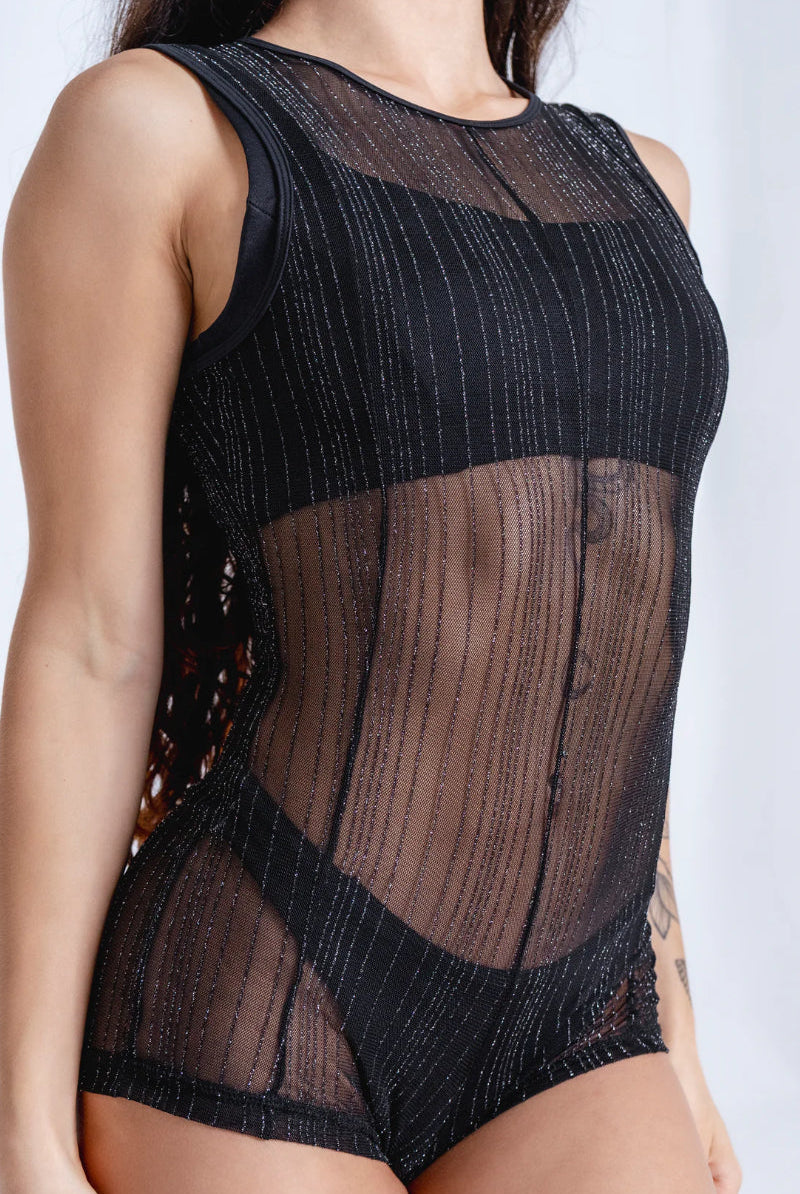Queen Wear Echo Grippy Jumpsuit - Star Black Mesh