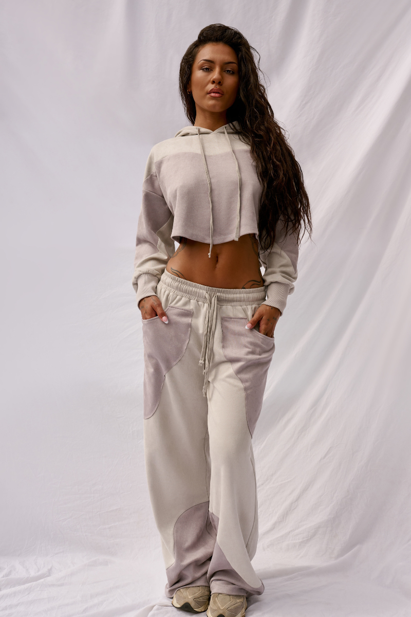 Featuring a fold-over waistband for adjustable rise and finished with tonal light stone & lilac-grey panelling for a relaxed look. ☁️