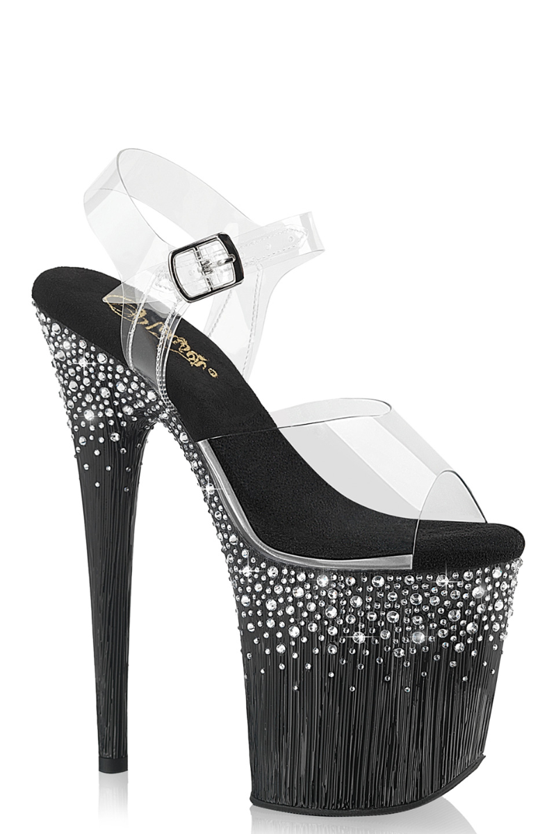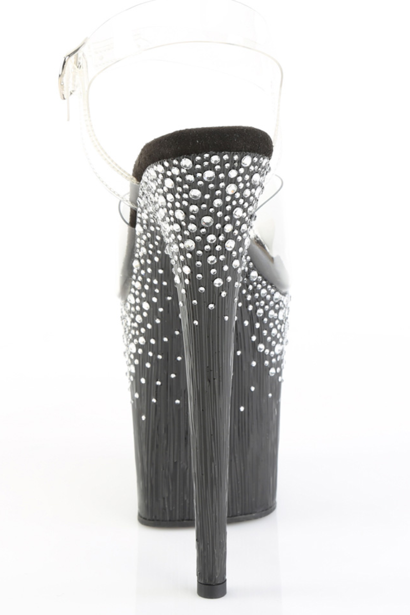 8" (200mm) Heel | 4" (100mm) Platform Ankle Strap Sandal | With Clear Soft TPU Upper with Rounded & Smooth Edges | Sprinkle of Diamantes