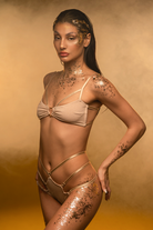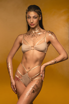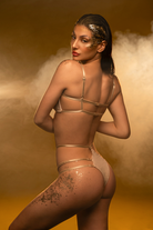 Drip in liquid luxury. These low-rise shorts are pure golden magic, featuring a high-leg, cheeky cut that demands attention. The unique triple-strap design defies gravity, connecting the barely-there silhouette with a shimmer that catches every spotlight. A celestial dream for those ready to outshine the stars.