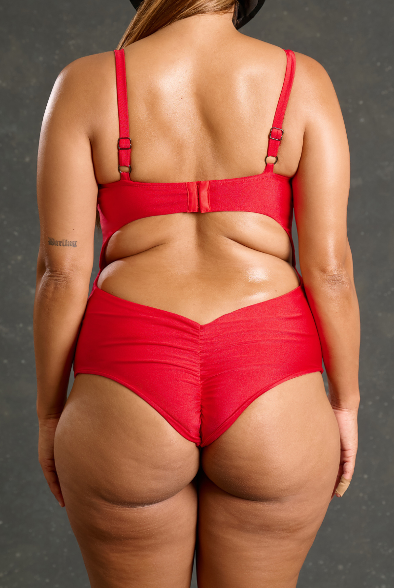 CXIX Aphrodite Bodysuit - Red Iridescent Rhinestone Drip