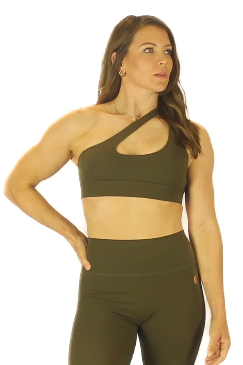 Olra Activewear Aurora 2.0 One Shoulder Crop Bra - Army Green