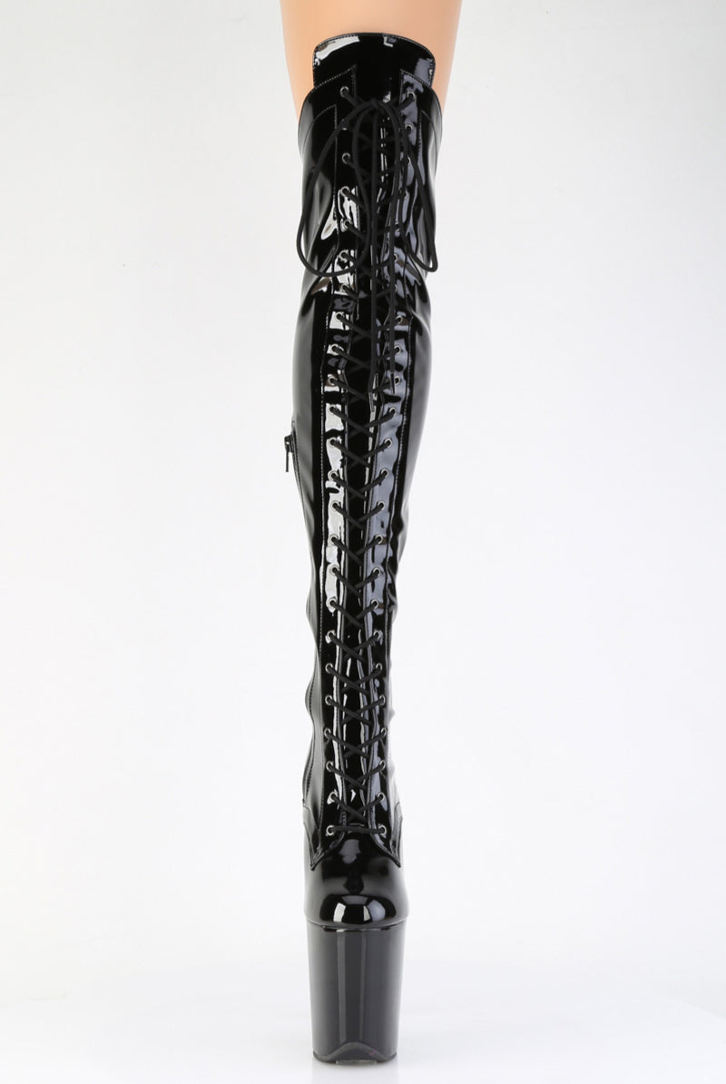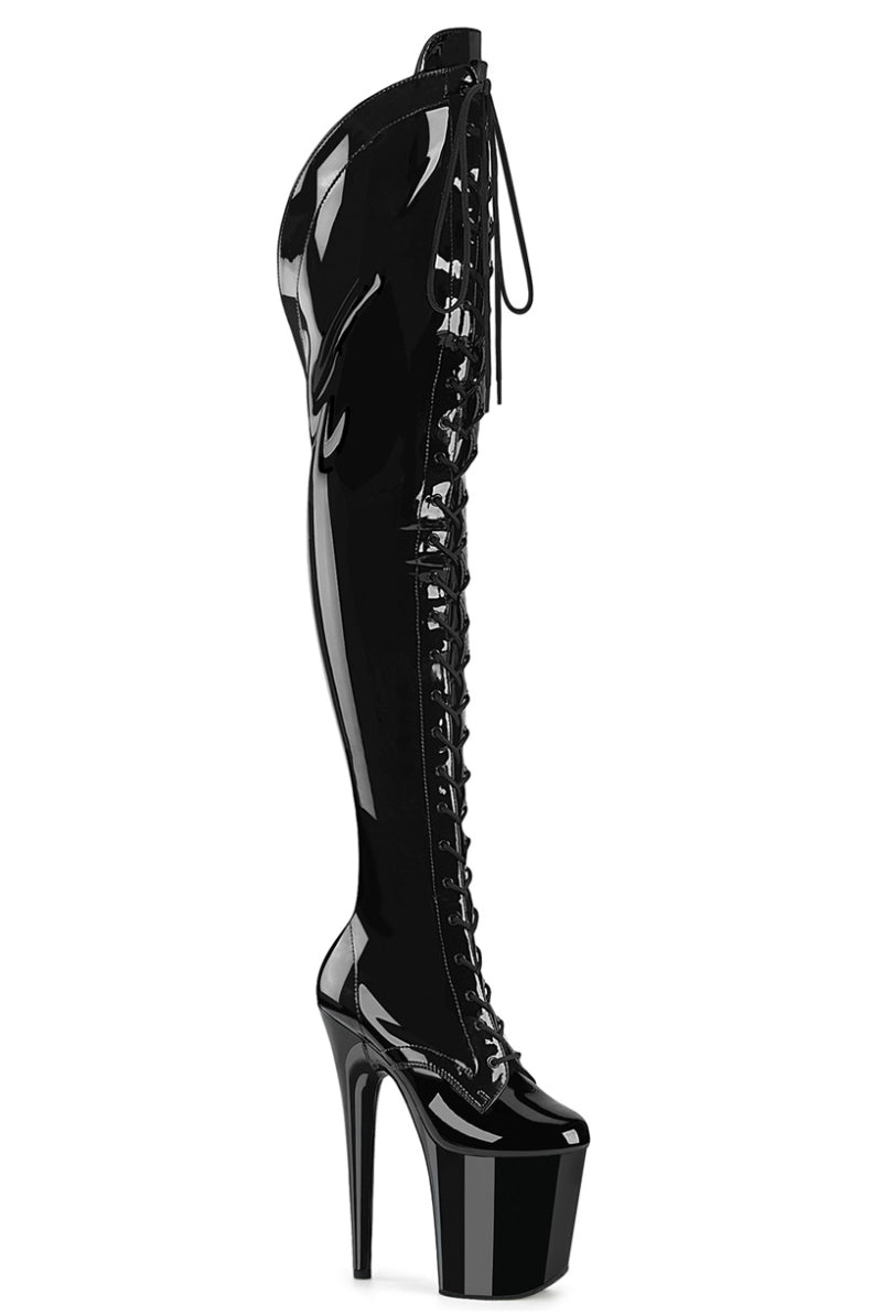Pleaser USA Flamingo-3028 8inch Thigh High Pleaser Boots - Patent Black-Pleaser USA-Pole Junkie