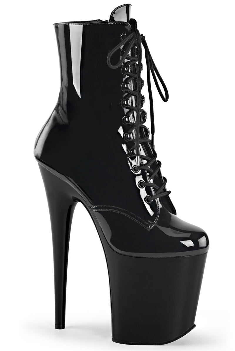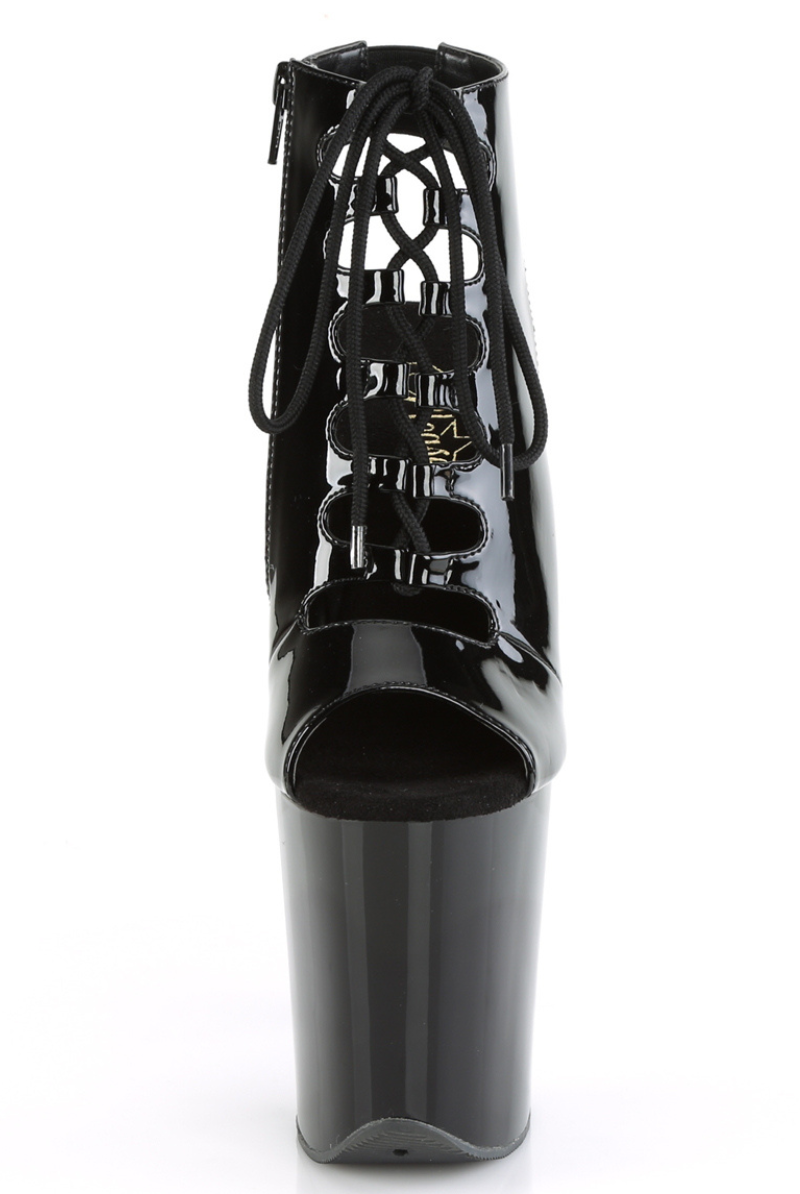 Pleaser USA Flamingo-800-20 8inch Lace Up Stilletos - Patent Black