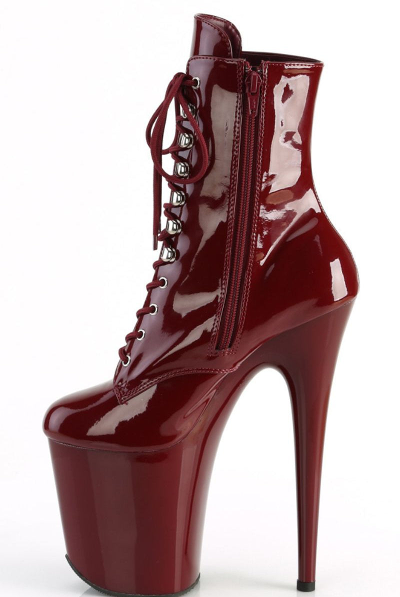 Pleaser USA Flamingo-1020 8inch Boots - Patent Burgundy