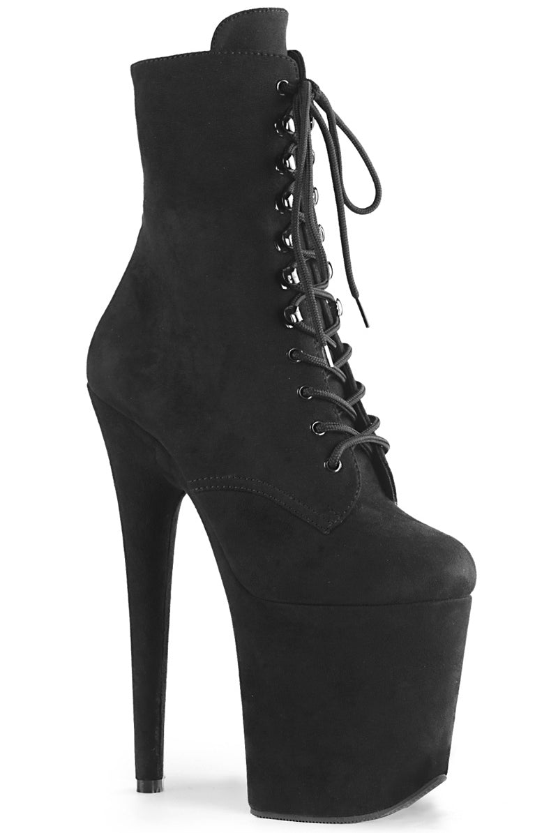 Pleaser USA Flamingo-1050FS Faux Suede 8inch Pleaser Boots - Black-Pleaser USA-Pole Junkie