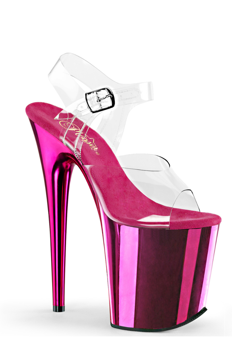 Pleaser USA Flamingo-808 8inch Stilettos - Hot Pink Chrome