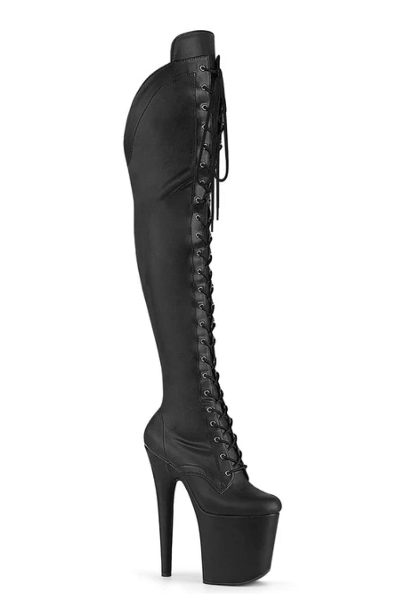 Pleaser USA Flamingo-3028 8inch Thigh High Pleaser Boots - Matte Black-Pleaser USA-Pole Junkie