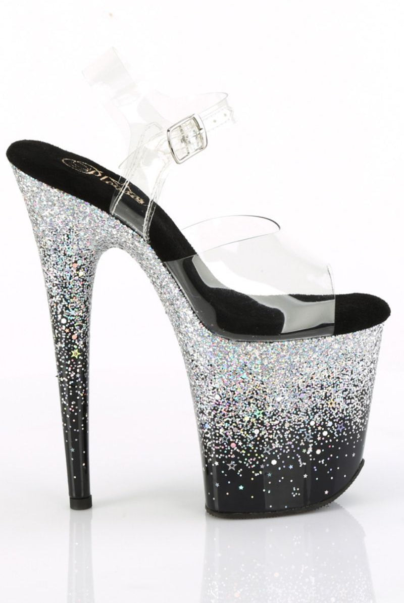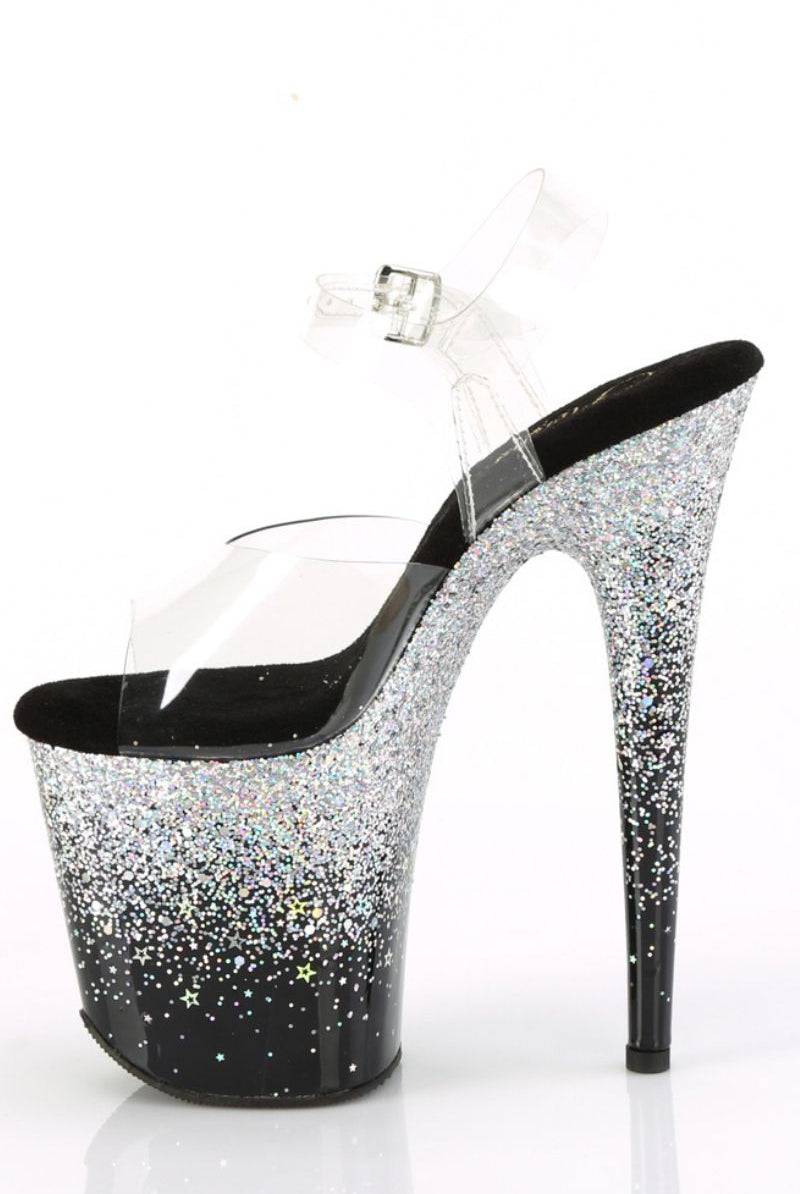 Pleaser USA Flamingo-808SS 8inch Stilettos - Black/Silver Glitter