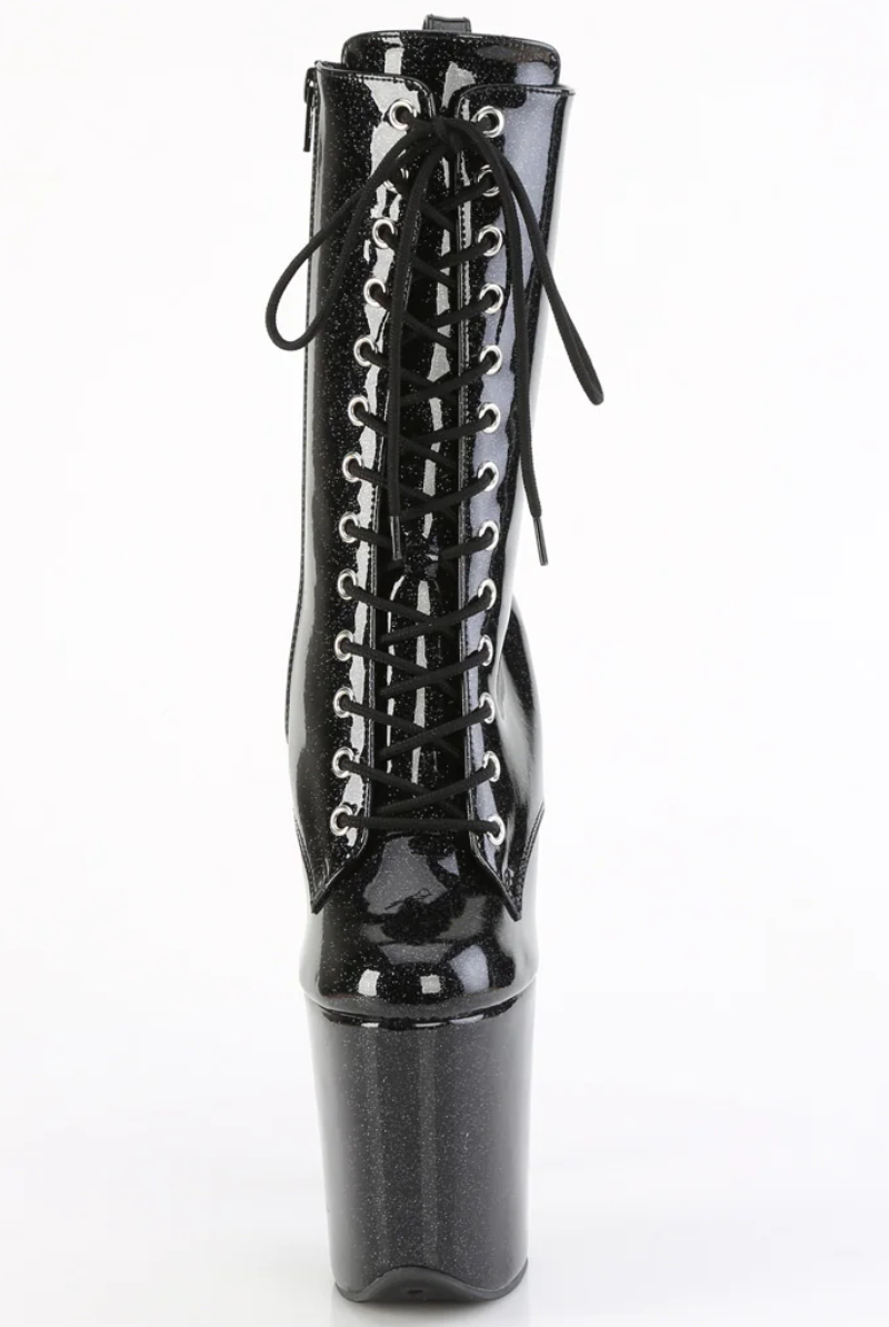 Pleaser USA Flamingo-1020GWR 8inch Boots - Black Glitter