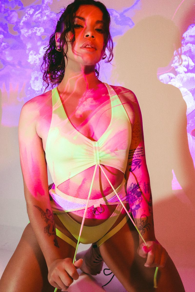 Pole Addict Mesmerised Bodysuit - Neon Yellow
