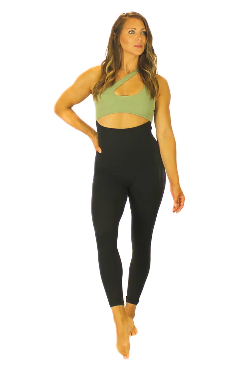 Olra Activewear Aurora One Shoulder Jumpsuit - Sage/Black