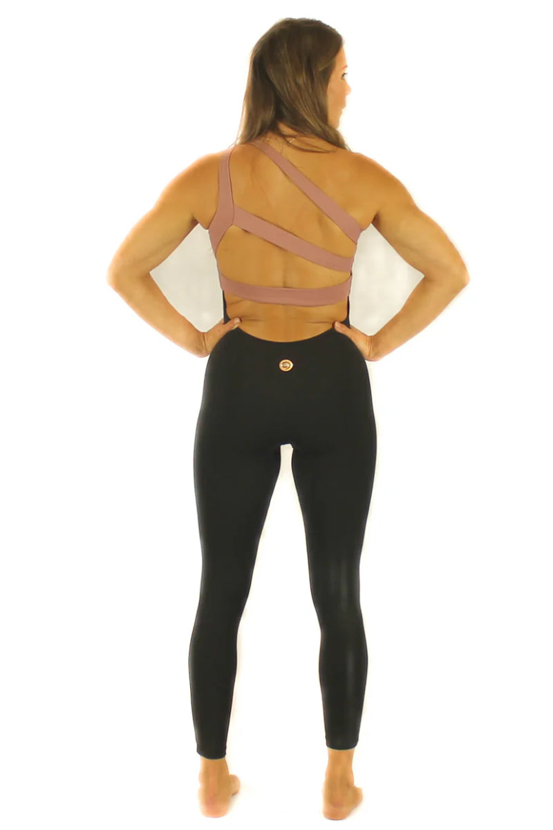 Olra Activewear Aurora One Shoulder Jumpsuit - Rose/Black