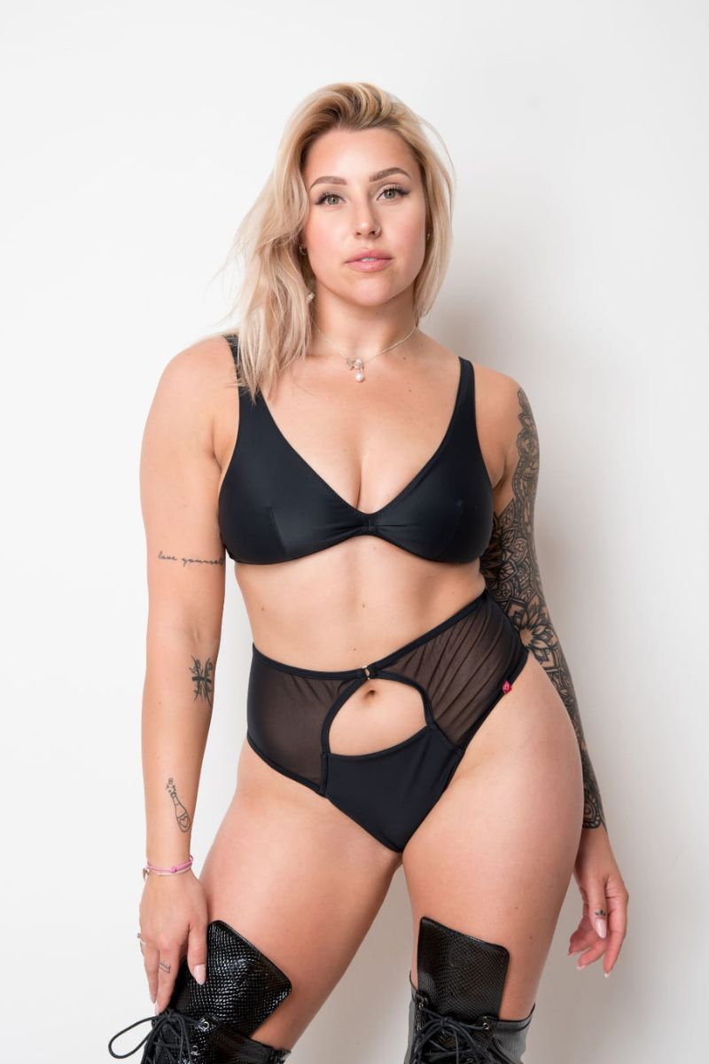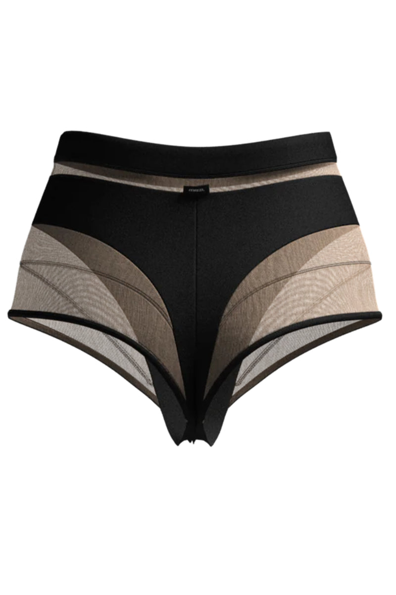 Lunalae Iris Crossover High Waisted Garter Shorts - Black