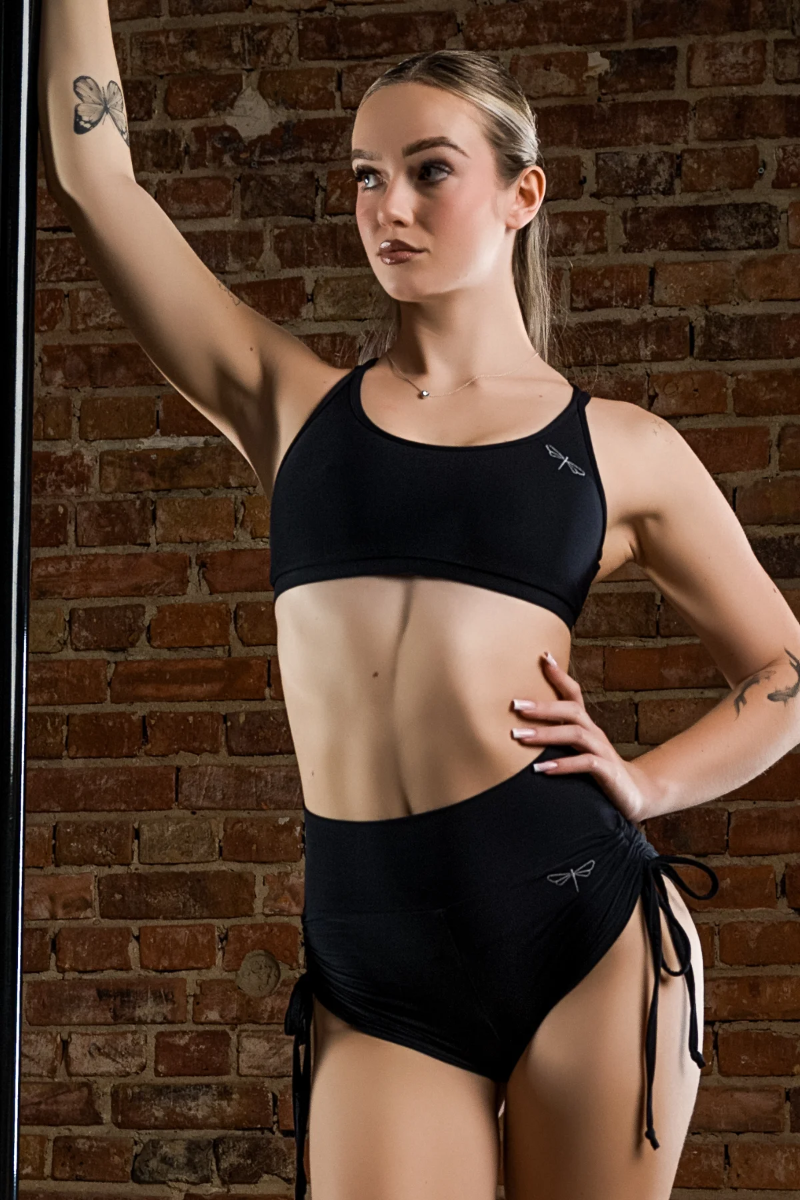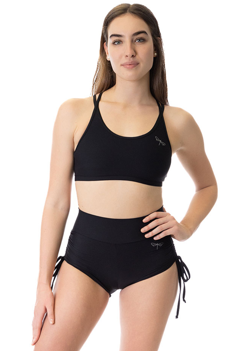 High-waisted | Thick Waistband | Adjustable Drawstring Sides | Signature Dragonfly Logo | Choose between High Leg Cheeky Cut or Fuller Coverage | Buttery Soft Material |