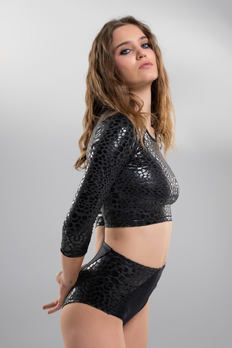Paradise Chick Superhero Sticky Crop Top - Black Chameleon