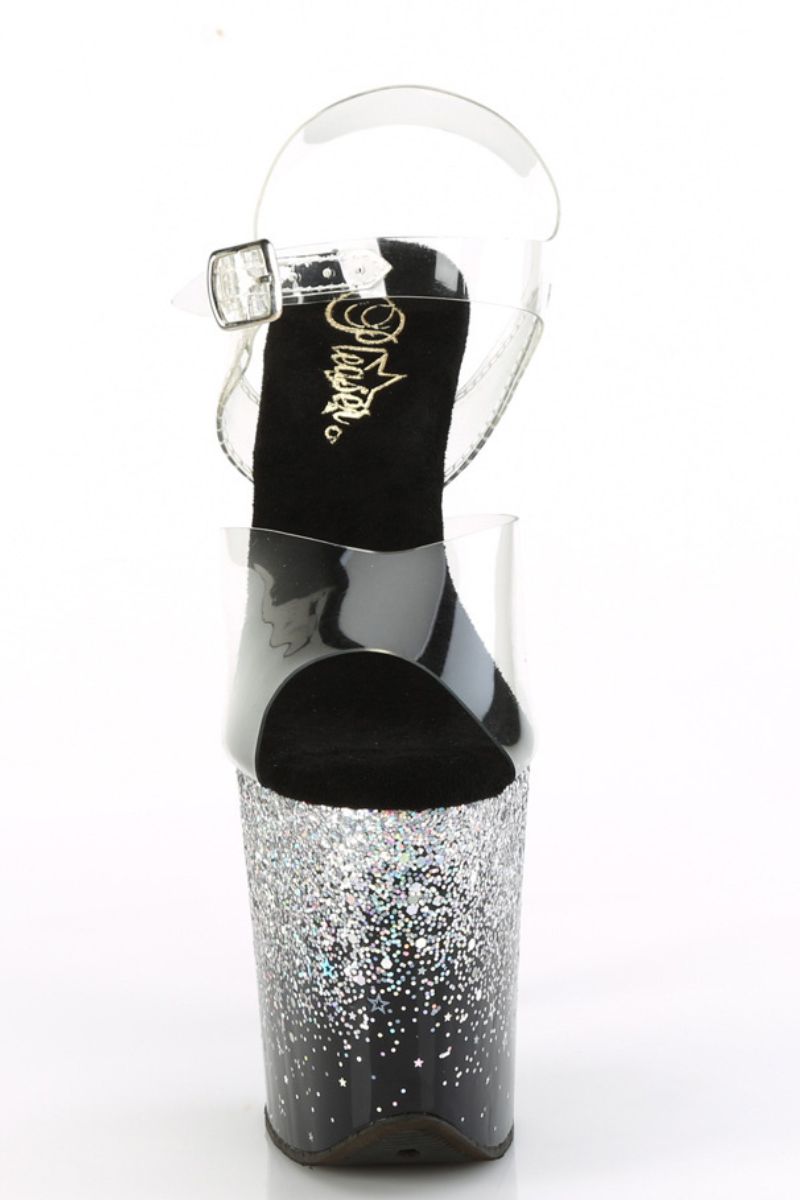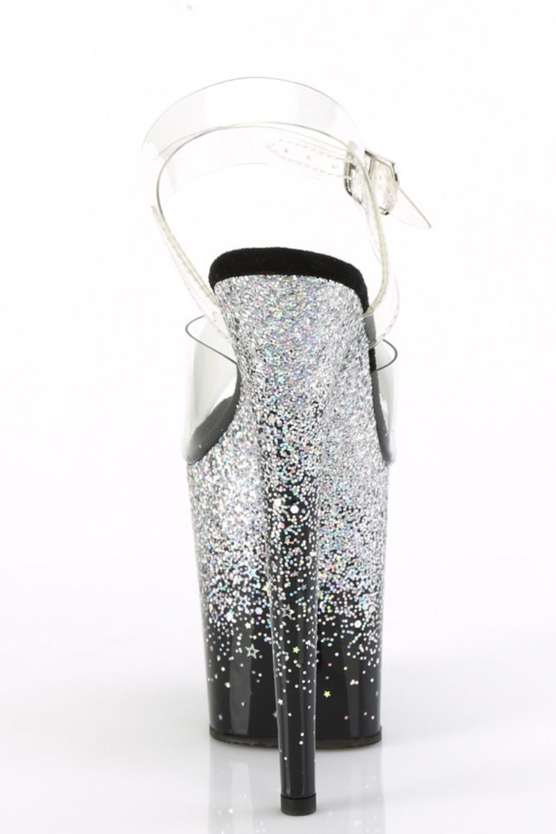 Dare to shimmer in the Pleaser USA Flamingo-808SS 8inch Pleasers - Black/Silver Glitter; an 8-inch heel and 4-inch platform adorned with holographic and ombre glitter. These heels are your declaration of strength and sparkle on the dance floor.💃🤩