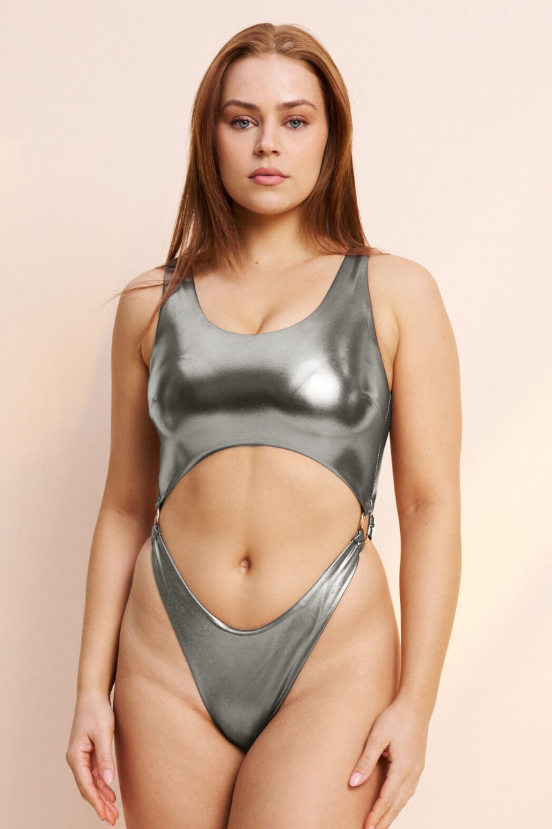 Lunalae Kenzie High Cut Bodysuit - Silver