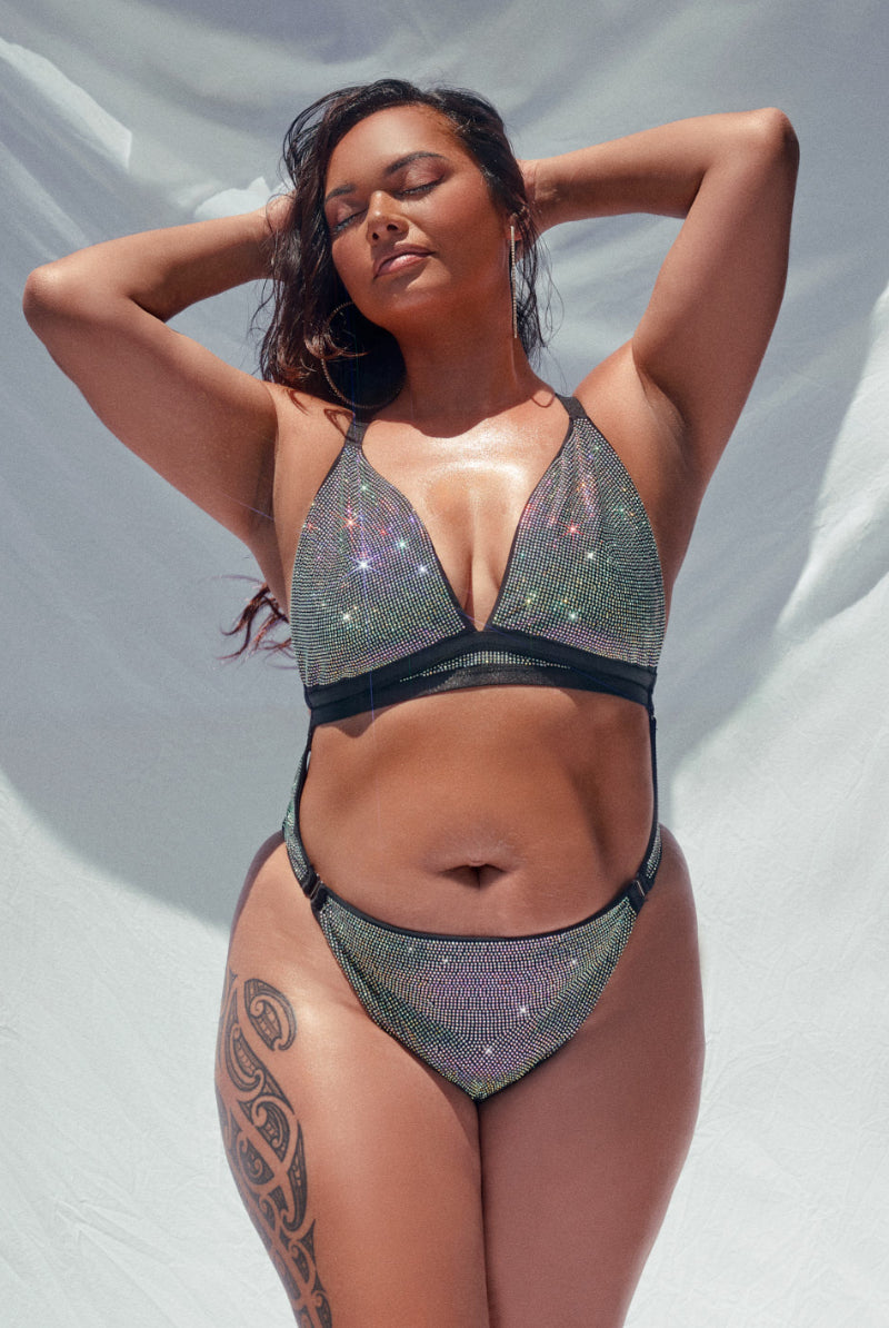 CXIX Aphrodite Bodysuit - Black Iridescent Rhinestone Drip