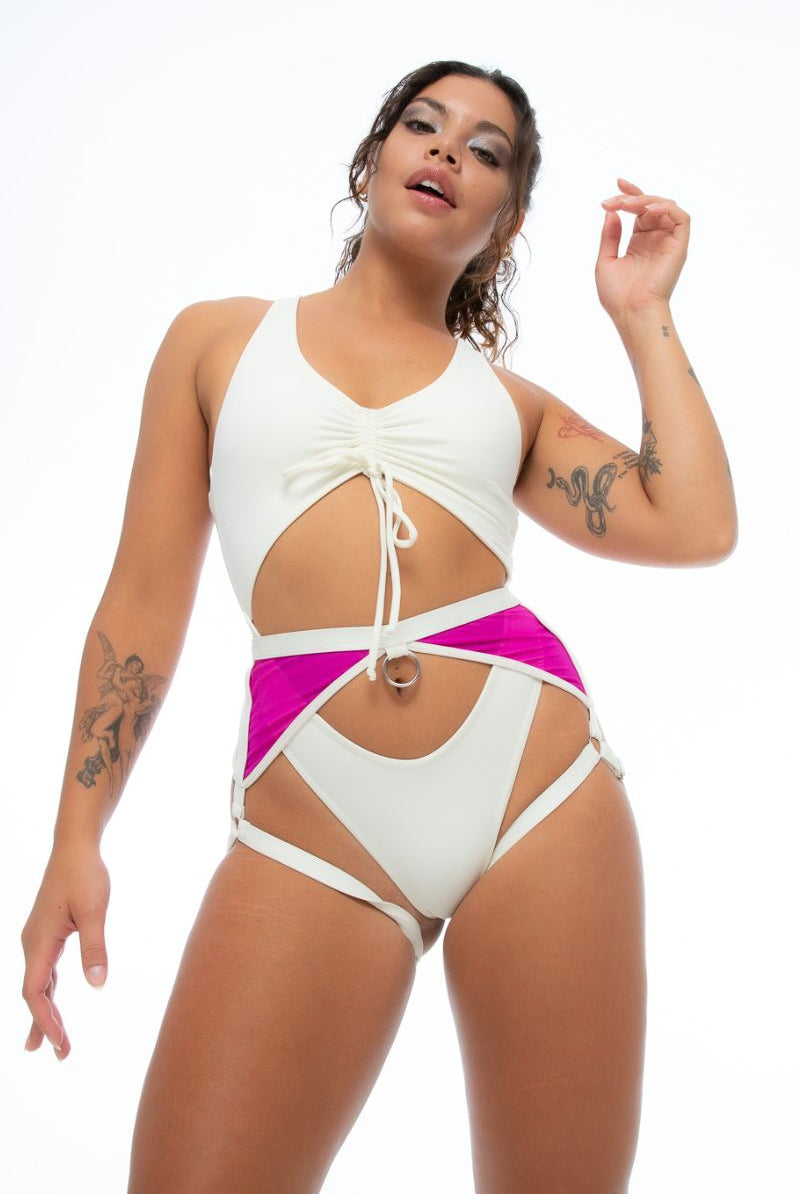 Rolling Fierce Bodysuit - Hot Pink Mesh