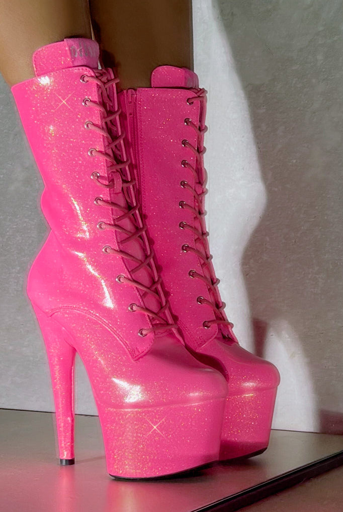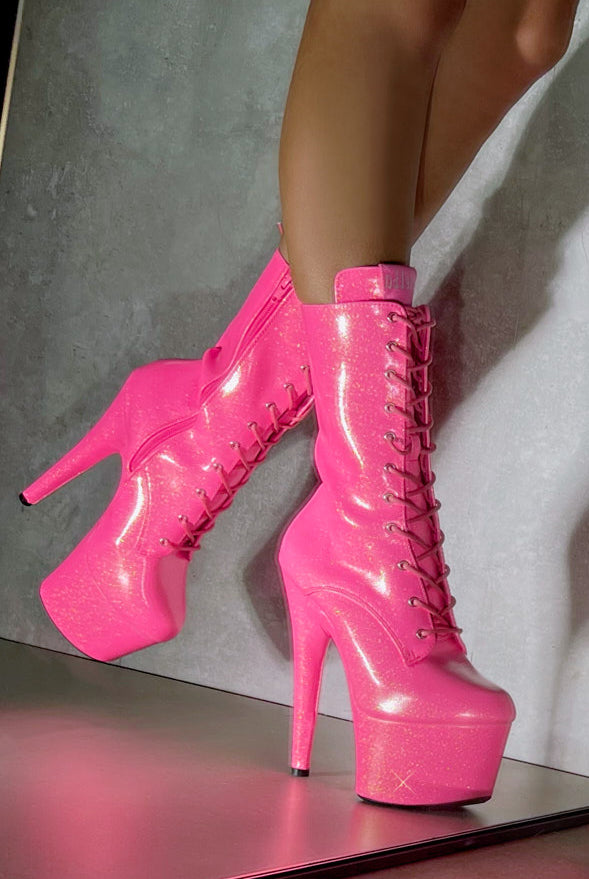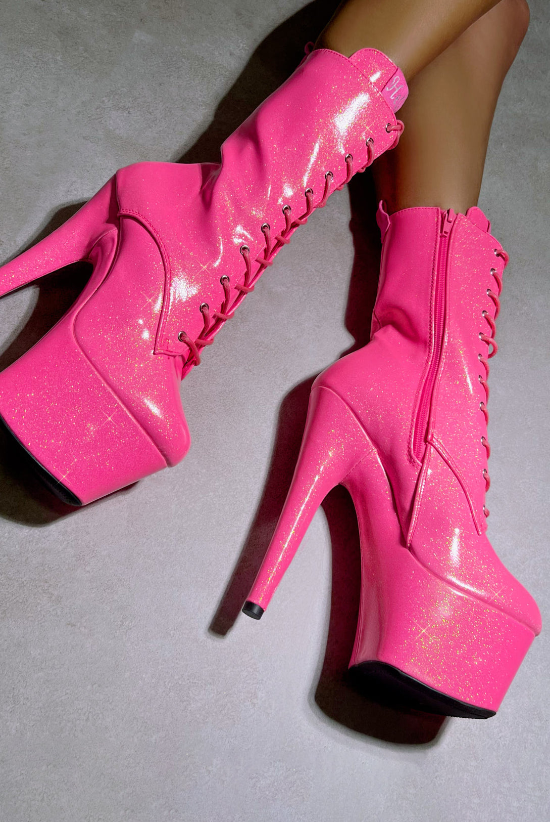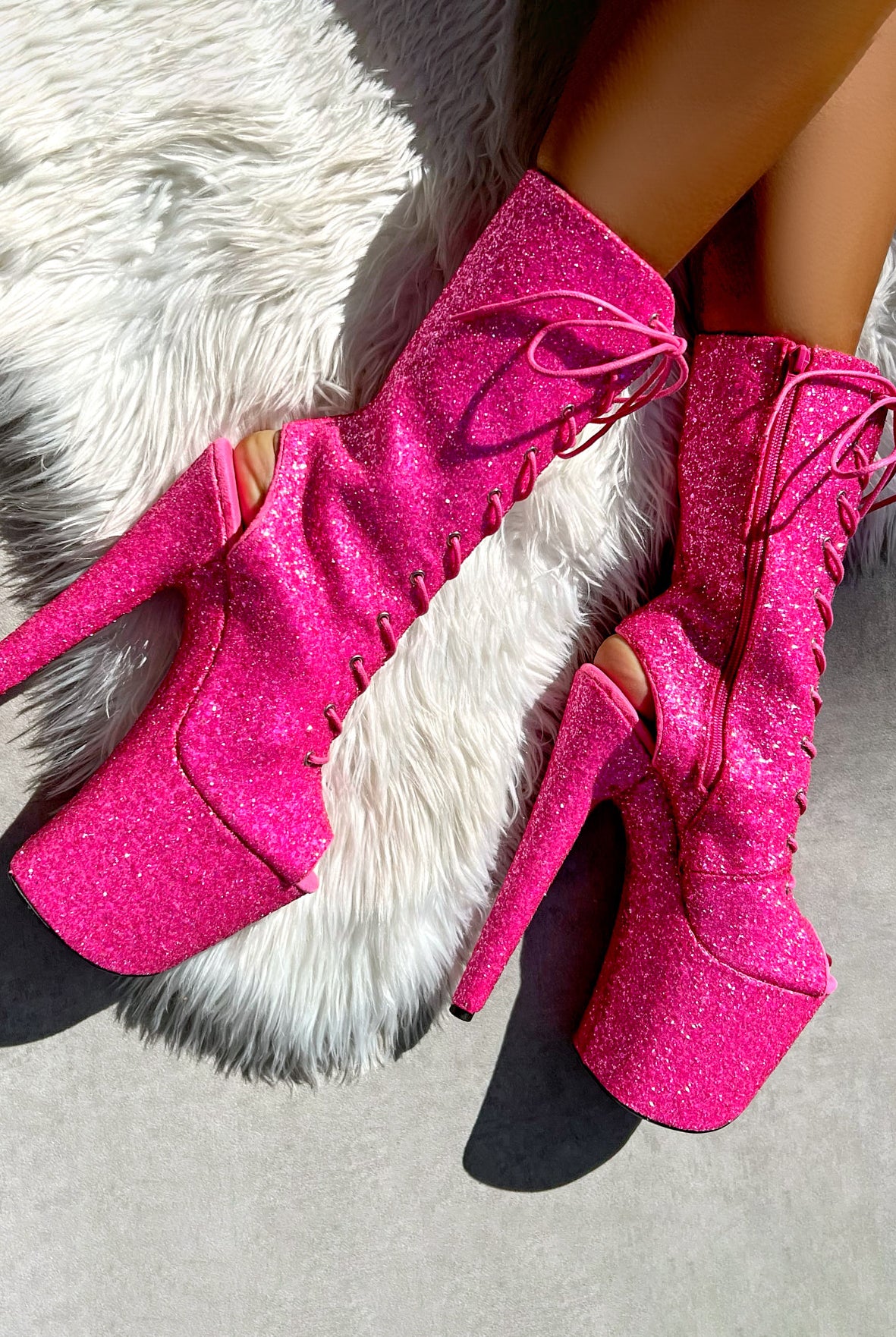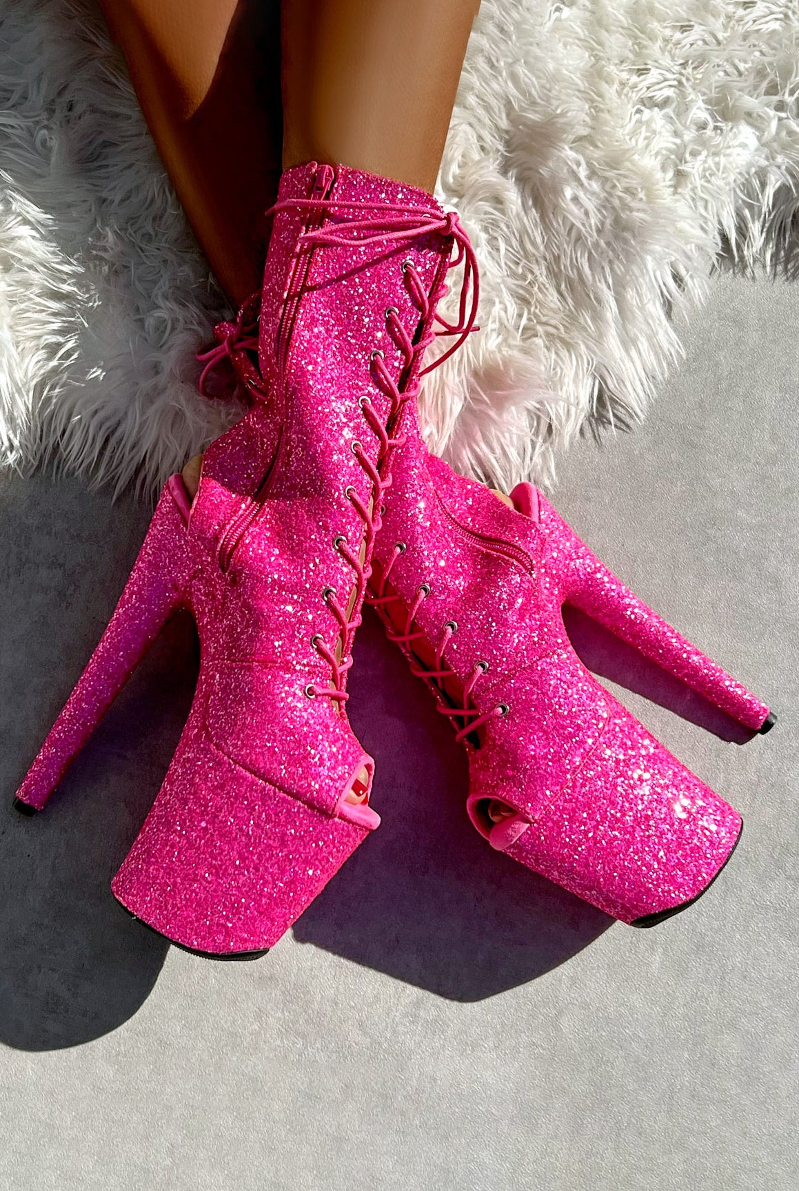 Hella Heels The Glitterati 7inch Boots - Juicy Pink Burst