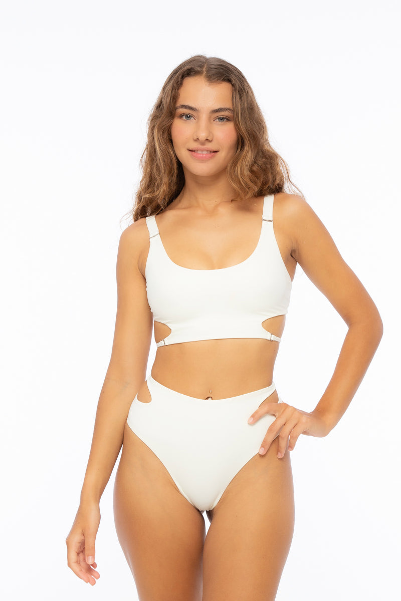 Rolling Mimeo Cropped Hoodie Halo Bralette - White