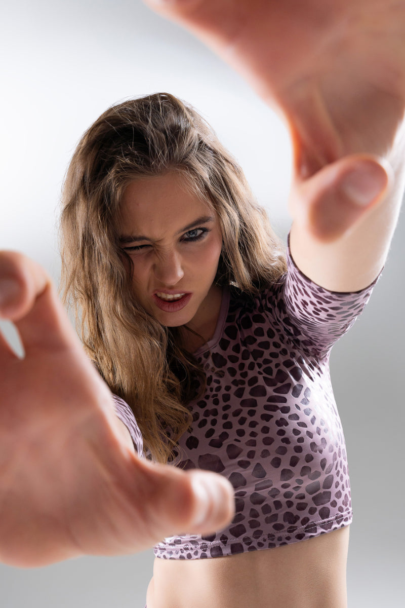Paradise Chick Superhero Sticky Crop Top - Cherry Leopard