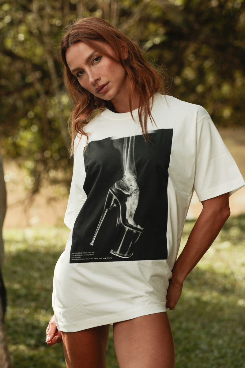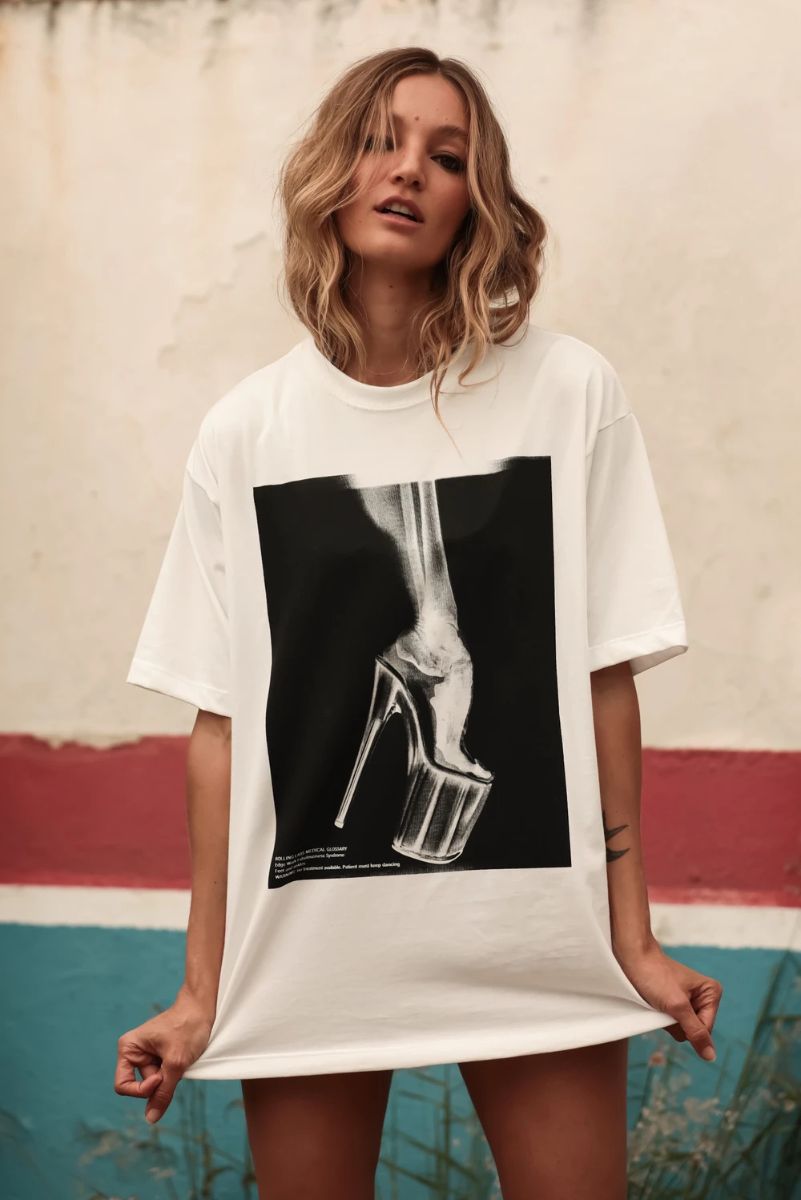 Cruise in comfort in this oversized fit Tee with racey X-Ray print details. Breathable and rebellious, this tee is the ultimate sexy pit stop for pole queens looking to push boundaries and accelerate style on and off the pole.